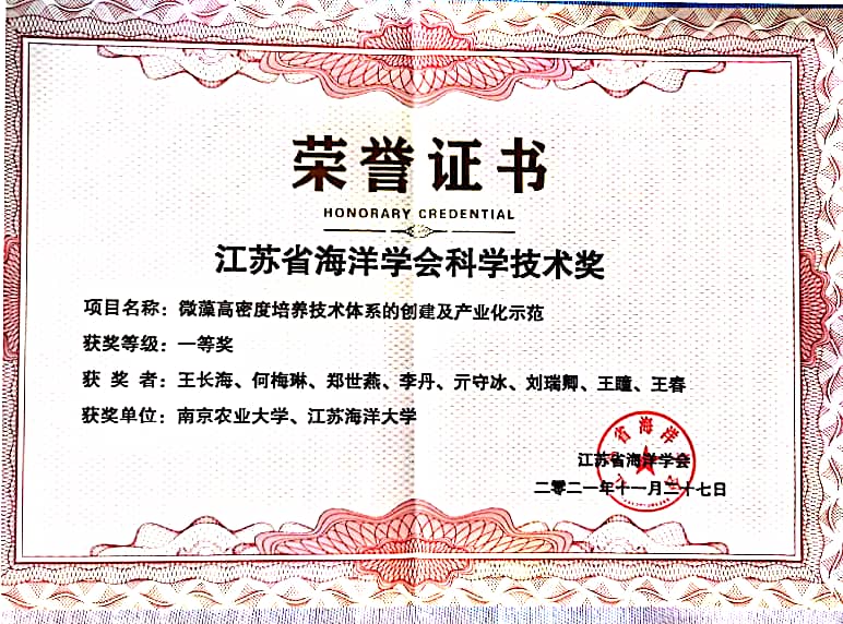 2021年获江苏省海洋学会科学技术一等奖