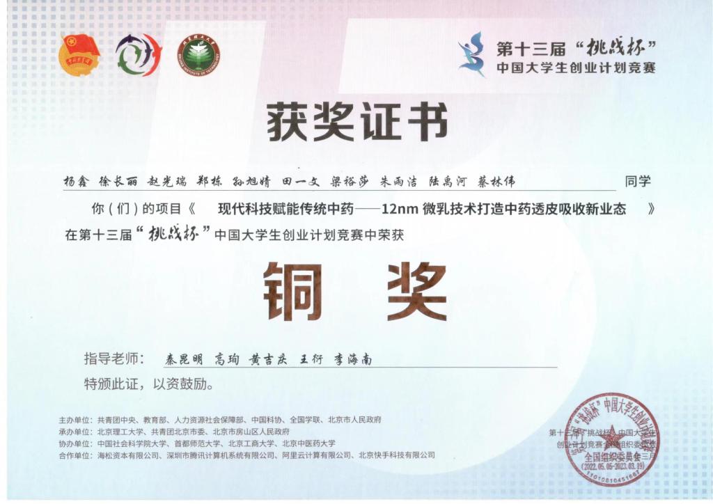 第十三届“挑战杯”中国大学生创业计划竞赛铜奖