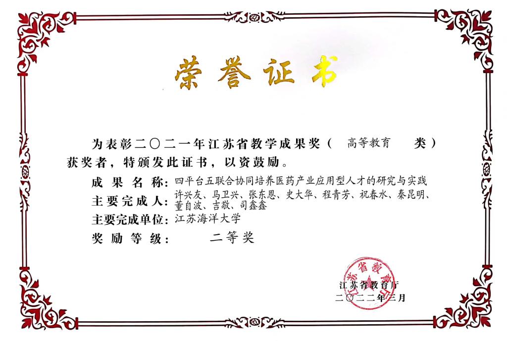 江苏省教学成果二等奖