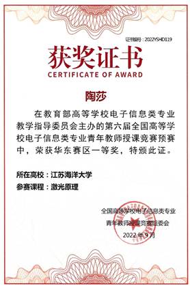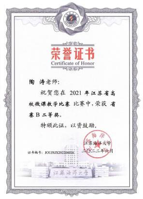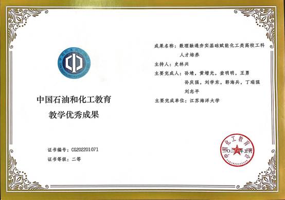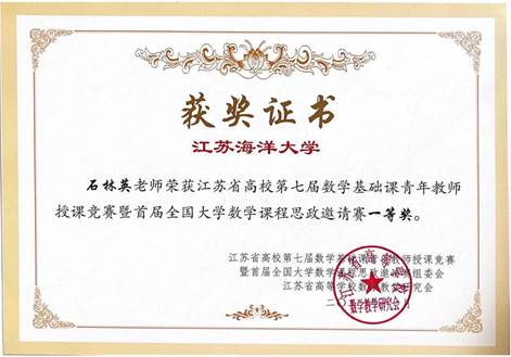 教学成果日益丰硕。获中国石油和化工教育教学优秀成果二等奖1项,校教学成果奖一等奖、二等奖、三等奖各1项;立项江苏高校“人才素质教育与数字化课程建设”专项课题1项,江苏省教育科学“十三五”规划2020年度重点资助课题1项,江苏省高质量公共课教学改革研究项目2项,教育部产学研“协同育人”项目5项。《概率论与数理统计(第三版)》获江苏省本科优秀培育教材。教学能力不断提升。获全国高等学校电子信息类专业青年教师授课竞赛三等奖2项,江苏省高校微课教学比赛一等奖1项、二等奖2项、三等奖5项,江苏高校数学基础课青年教师授课竞赛一等奖3项、二等奖4项、三等奖2项。