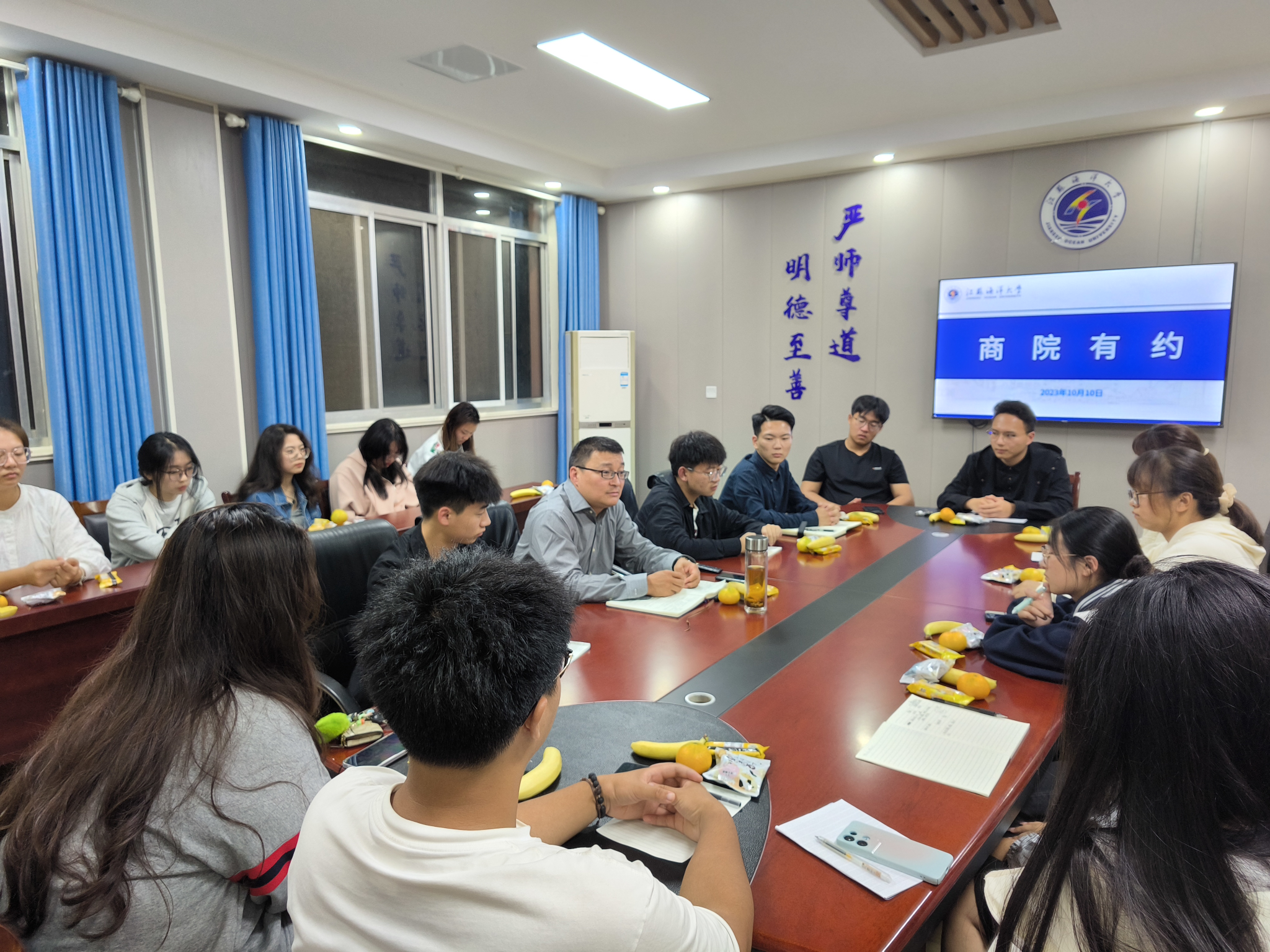 10月10日晚,商学院在通灌校区一站式学生社区组织了2023级新生入校后的第一场“商院有约”活动。商学院党委副书记王智金和新生代表一起参加了活动。