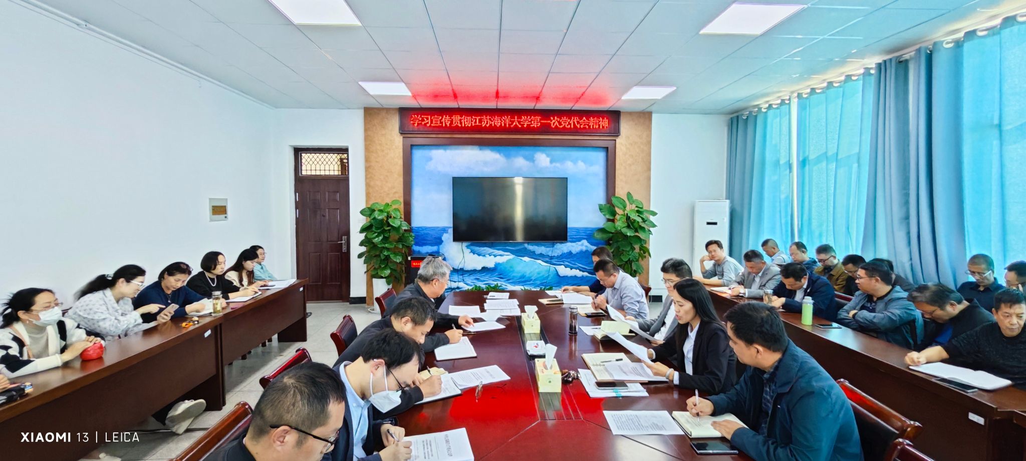 会上,祝春水传达了《中共江苏海洋大学委员会关于学习宣传贯彻中国共产党江苏海洋大学第一次党员代表大会精神的决定》和党代会工作报告《深化转型发展 强化改革赋能 奋力谱写高水平应用研究型海洋大学建设新篇章》等文件精神,带领大家重点学习了报告中我校未来发展的“三步走”战略、“十个新”的具体发展目标以及学校事业发展“三建一高”的总体目标等内容。