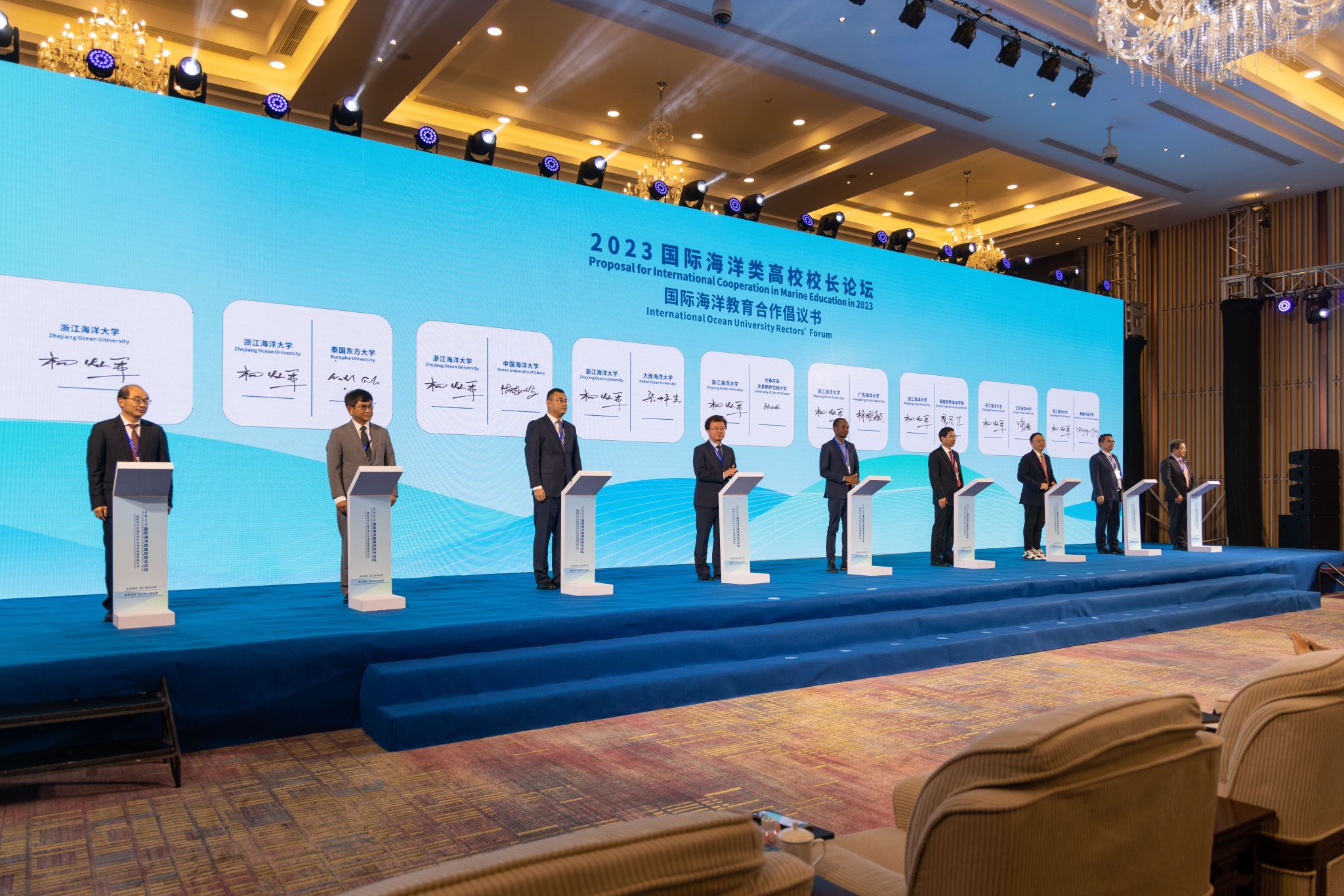 与会人员签署了国际海洋教育合作倡议书,参观了浙江海洋大学校史馆、船舶驾驶室和生物标本馆等。