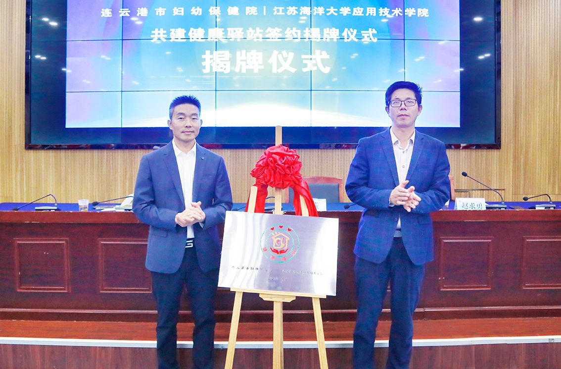 10月27日上午,应用技术学院与连云港市妇幼保健院在敦行楼报告厅举行共建健康驿站签约揭牌仪式。学院党委书记赵求勇,连云港市妇幼保健院院长、党委副书记赵成出席仪式,仪式由学院党委副书记时树奎主持,校医双方相关职能部门负责人和学生代表参加了活动。