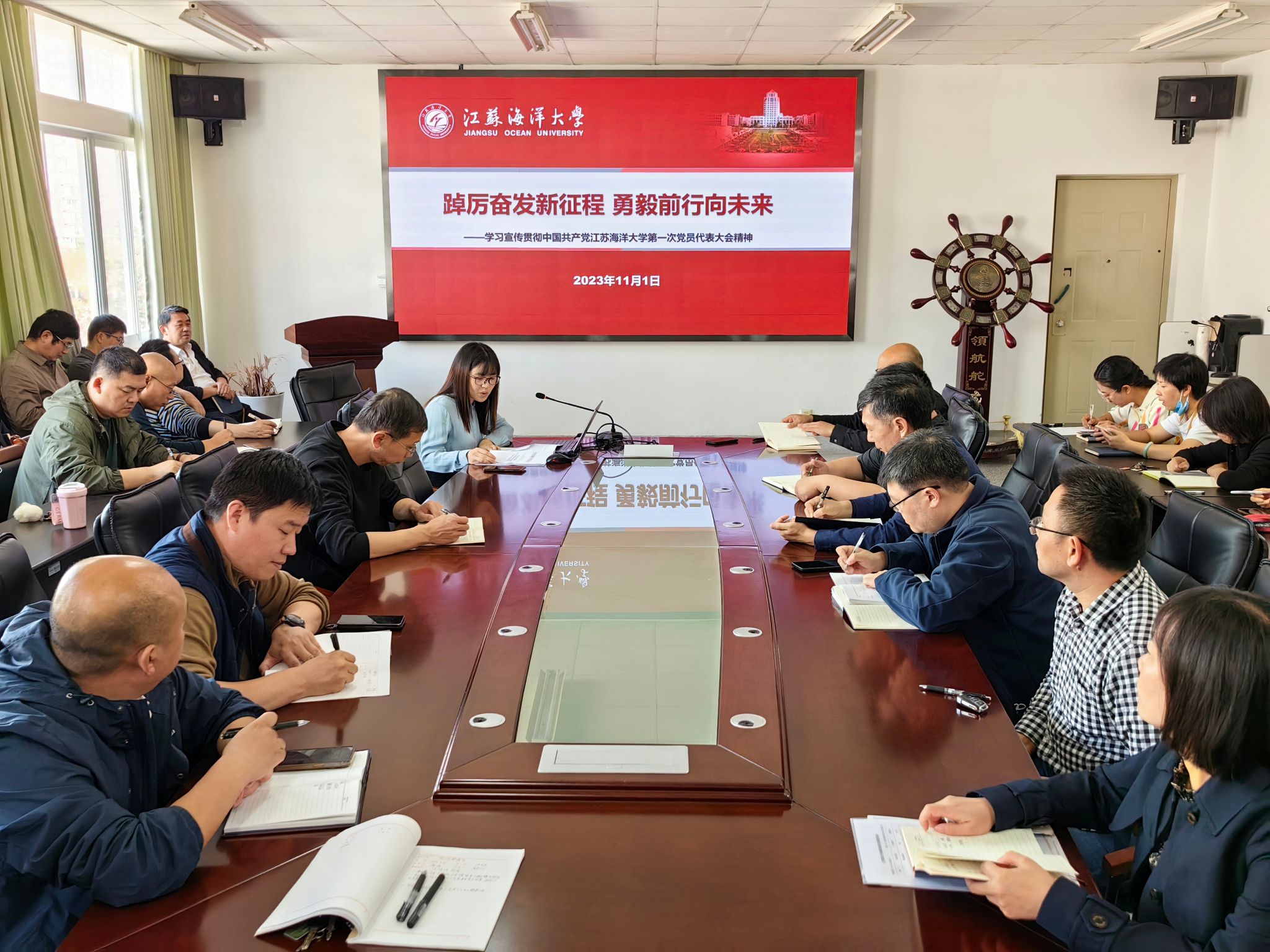 会上,唐瑶首先传达了学校党委《关于学习宣传贯彻中国共产党江苏海洋大学第一次党员代表大会精神的决定》文件通知,接着领学了学校党代会工作报告和纪委工作报告的主要精神。