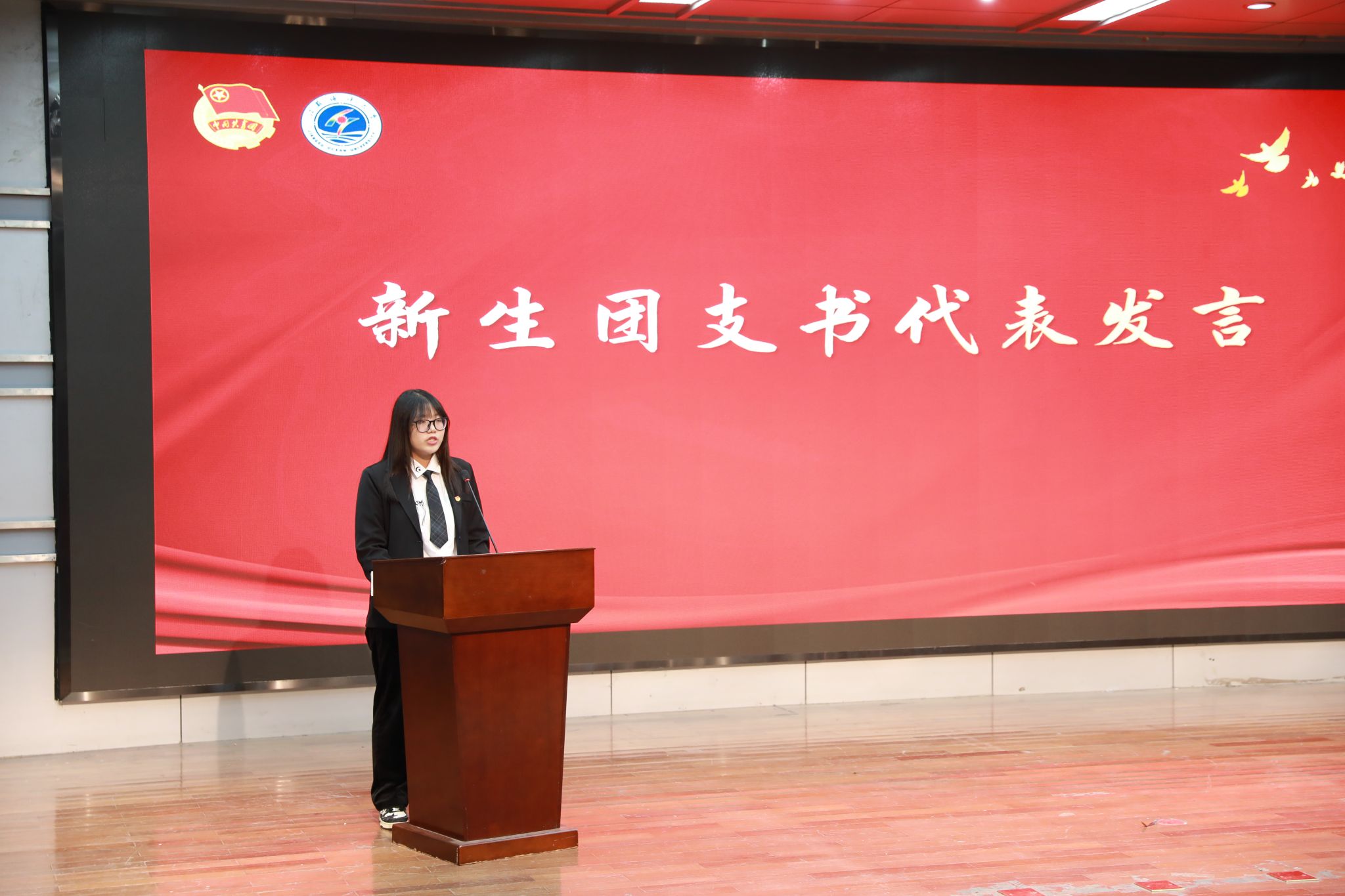 日语1232班团支书刘亦微代表新生团支书发言。她认为要做好一名团支书,自身必须练就过硬的本领,做好同学们学习上的模范,行为上的先锋,才能团结凝聚青年,服务青年。
