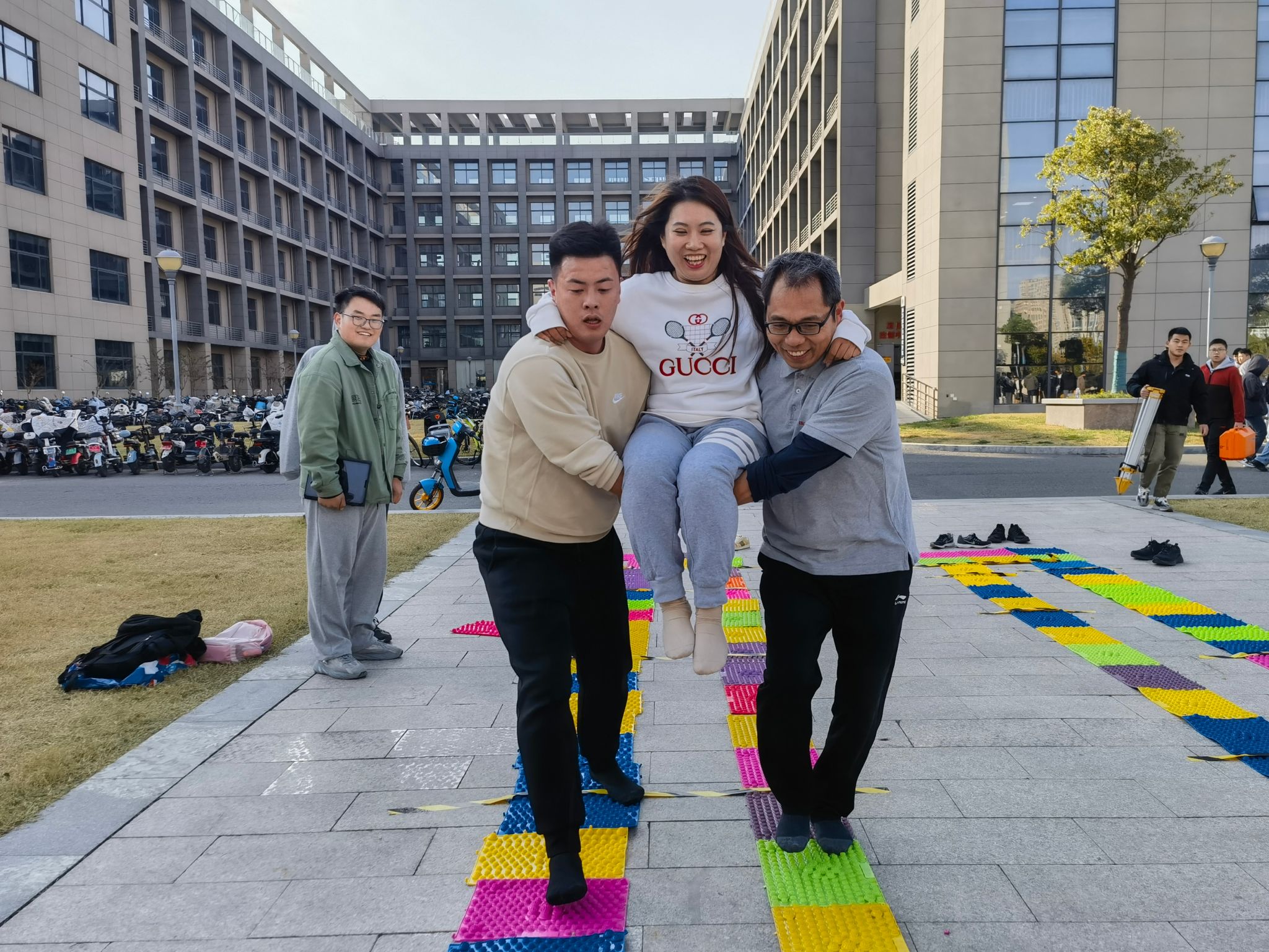 经过现场电脑随机抽签,形成A、B共13个小组,随着一声“开跑”,选手们如离弦之箭般冲出,他们找准目标,步履不停,穿越楼宇,跨越阶梯,齐心协力,挑战极限,一路奔跑,奋力拼搏,任汗水挥洒校园,整个过程紧张而不失趣味。经过一番速度与智慧的激烈碰撞,体力和耐力的比拼较量,最终A路线第七组和B路线第二组分别斩获A、B组别第一名。