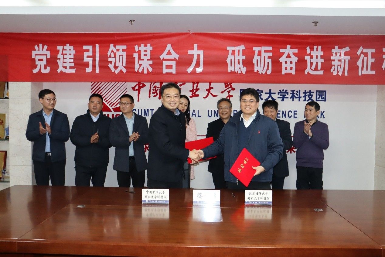 中国矿业大学国家大学科技园与江苏海洋大学国家大学科技园双方的总经理代表签署了结对共建协议。此次合作协议的签订,标志着江苏海洋大学和中国矿业大学两校国家大学科技园之间合作进入新的阶段。