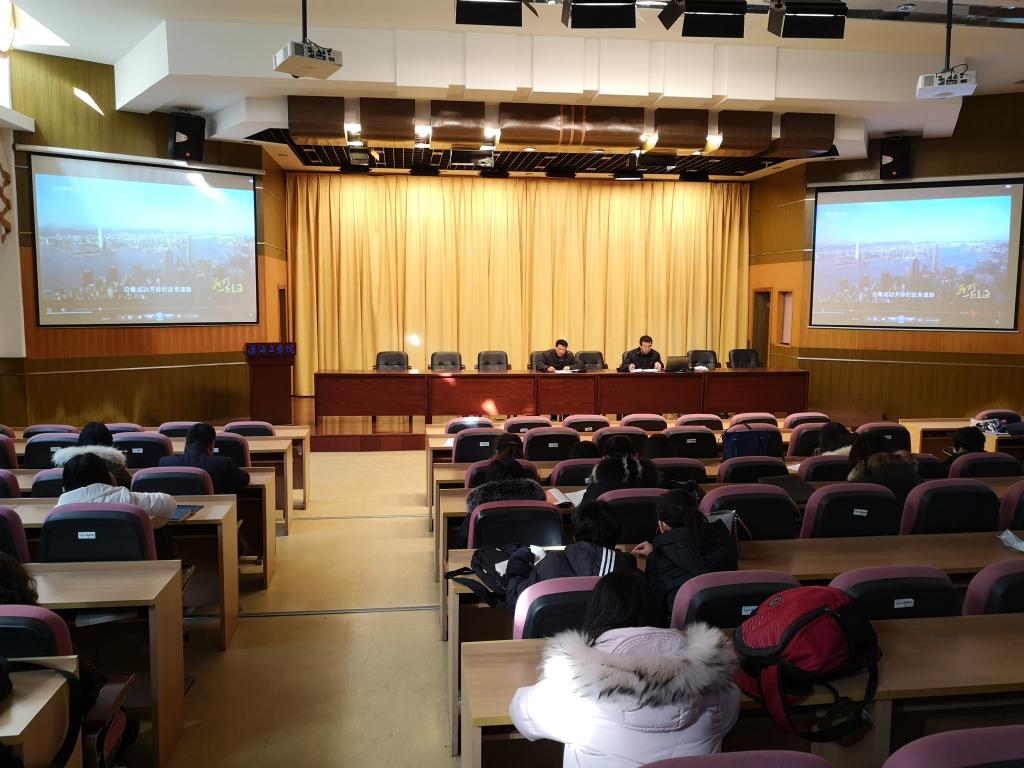 1月16日下午,外国语学院在文博楼报告厅召开全体教职工大会,学院党委书记赵宏传达《省委教育工委关于转发中共教育部党组认真学习贯彻习近平总书记在庆祝改革开放40周年大会上重要讲话精神的通知》精神,全体教职工集中观看《我们一起走过——致敬改革开放40周年》专题片第一集《弄潮儿向涛头立》。