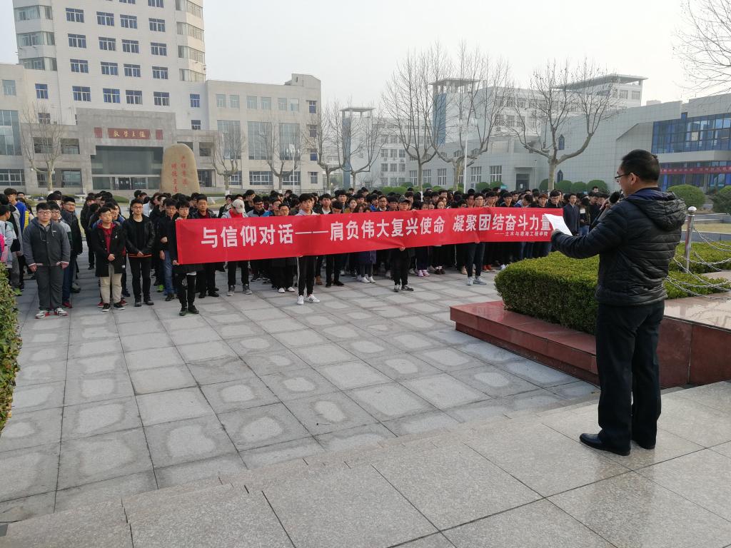 随后,李明金围绕“以践行十九大精神为统领,肩负使命争做新时代先锋”这一主题发表讲话,对全体学生提出三点要求:一是要加强思想引领,坚持“四个自信”;二是要勇于责任担当,牢记“四个意识”;三是要肩负复兴重任,争做时代先锋。