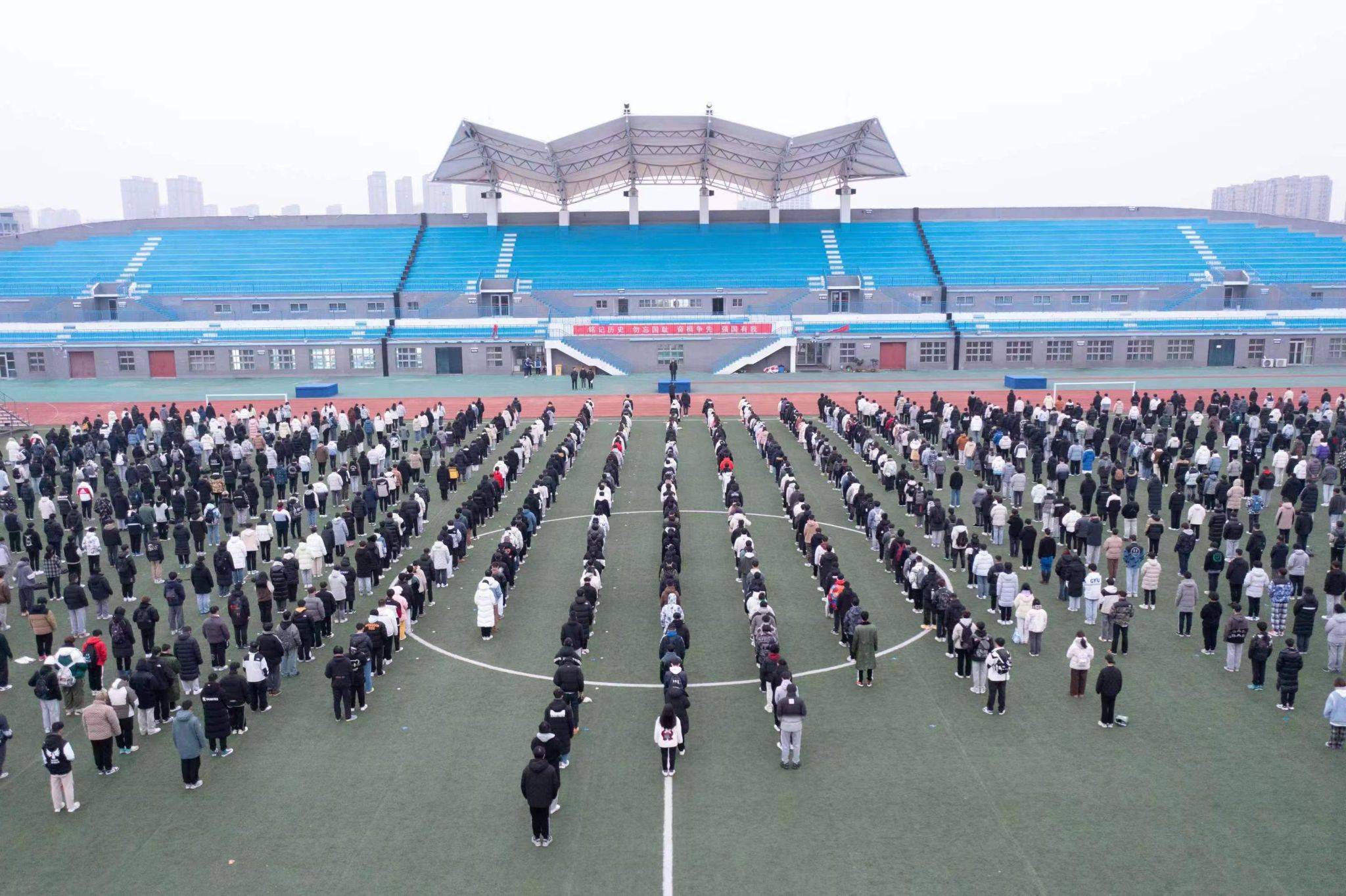 最后,全体师生集体默哀一分钟,缅怀在南京大屠杀中遇难的同胞。