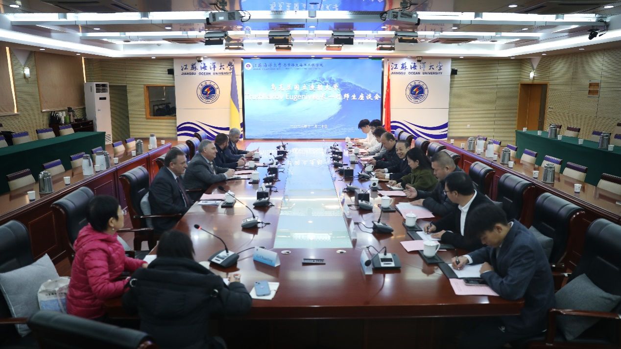 12月20日下午,乌克兰马卡洛夫国立造船大学校长Trushliakov Eugeniy、副校长Pavlov Gennadii、副校长Mykhailov Mykhailo、乌克兰造船科学院院士、机械工程教育科学院院长Serhiy Serbin一行到马卡洛夫海洋工程学院交流考察。学院党政领导班子成员、专业学院教学、科研负责人及马卡洛夫海洋工程学院全体师生参加相关活动。院长舒小平主持交流活动。
