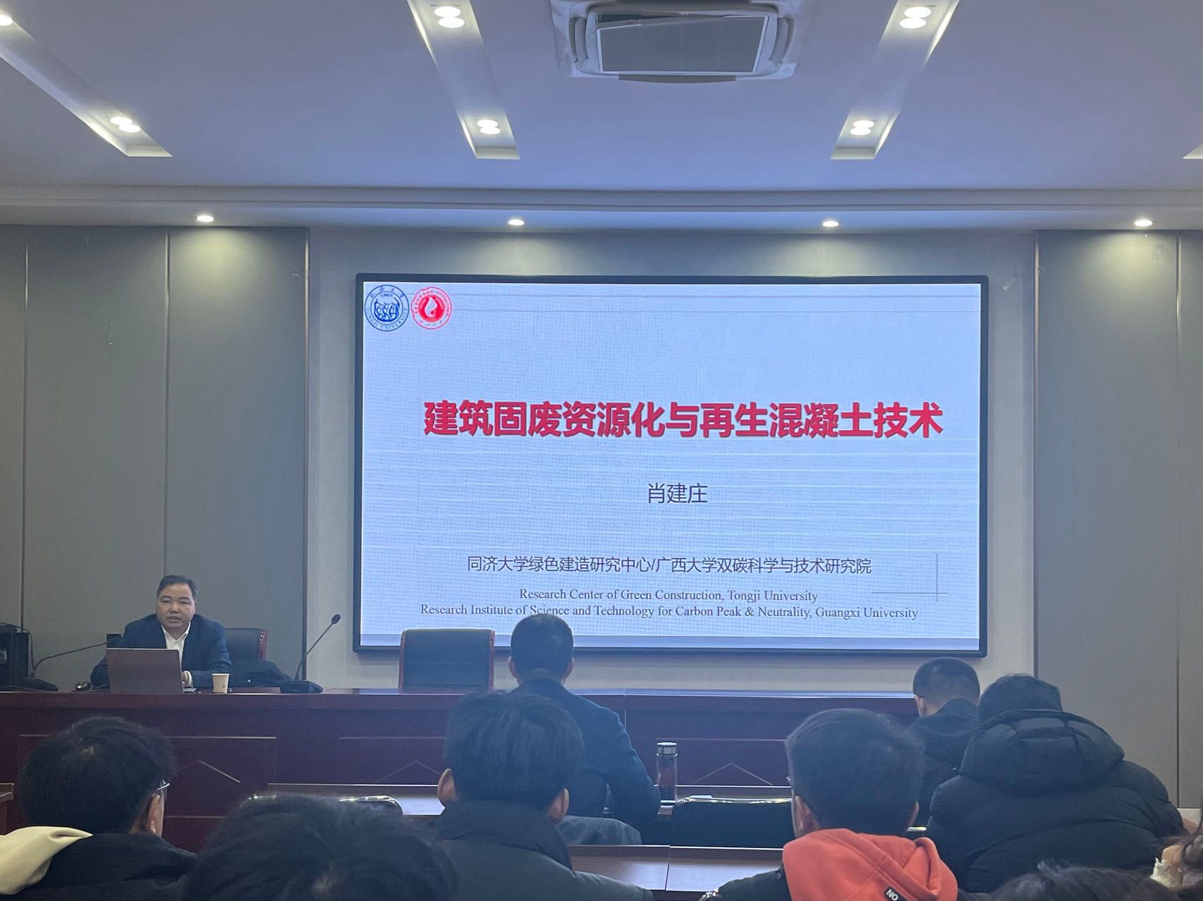 2024年1月3日下午,同济大学教授、同济大学绿色建造研究中心主任、广西大学副校长肖建庄,应土木与港海工程学院邀请,出席“名校大咖面对面”活动,进行了题为“建筑固废资源化与再生混凝土技术”学术报告。活动由土木港海工程学院院长宗钟凌主持,学院党委书记王改红,副院长蔡小宁、朱文谨,以及部分老师和研究生聆听了报告。