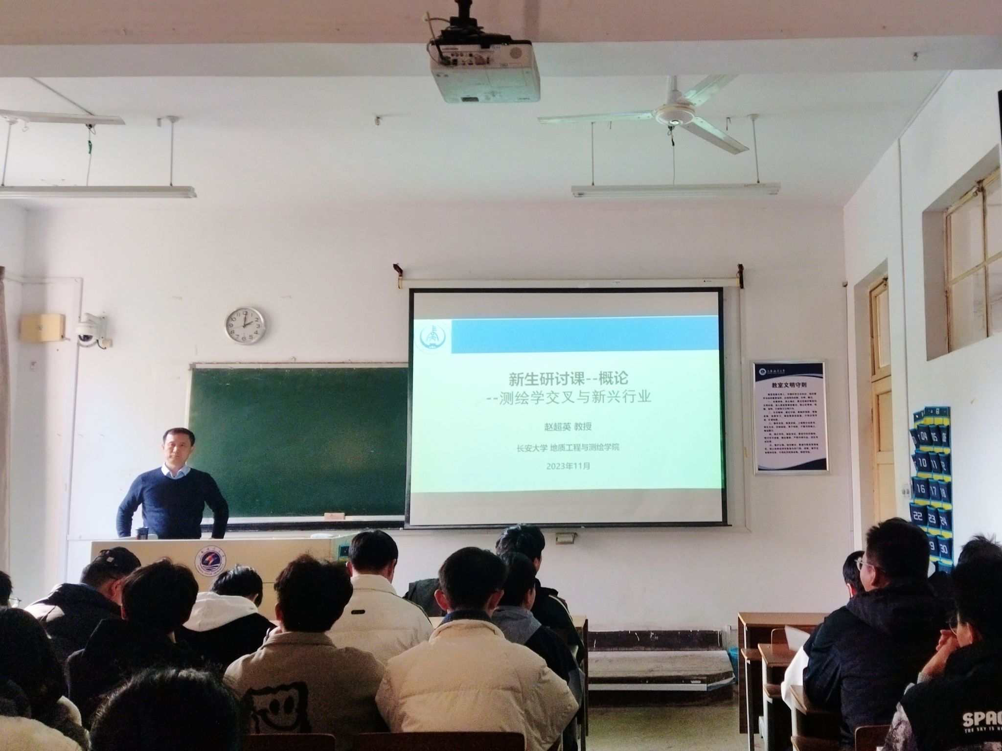 10月17日,焦明连教授率先开讲,他用生动的案例帮助学生全面了解测绘学科、专业建设和行业发展的过去、现在和未来,引领学生初入测绘殿堂;周立教授主讲卫星导航定位专题,着重介绍了中国北斗技术和测绘装备的创新发展;费鲜芸教授主讲测绘地理信息产业发展和科技创新;柯福阳教授以“智能时代不可或缺——测绘新技术与个人发展机遇”为题,介绍了测绘新技术在智能时代的应用和发展;赵超英教授以研讨课方式,着重探讨了测绘交叉学科与新兴行业发展前景。