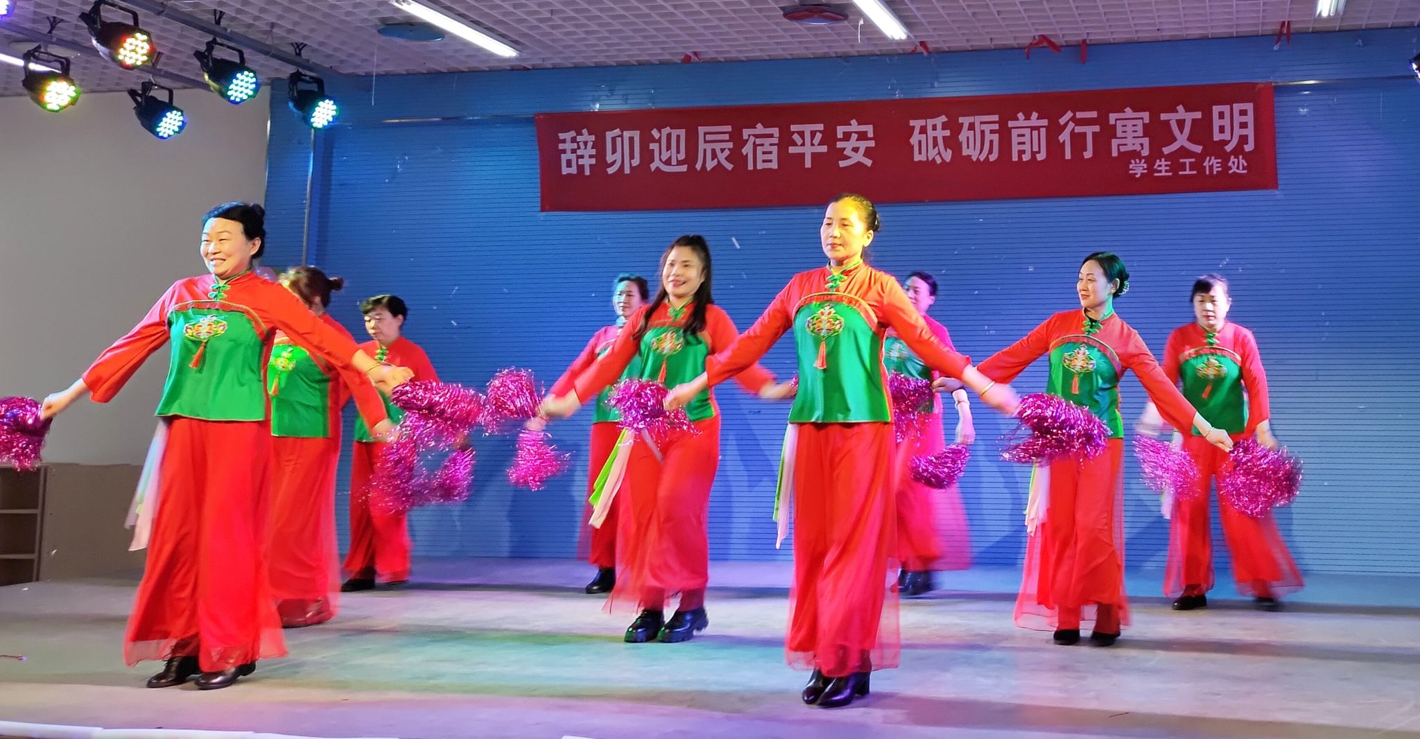 1月20日下午,学生工作处在兴海楼活动厅开展“辞卯迎辰宿平安,砥砺前行寓文明”活动,学生工作处处长陈德翼、副处长张志浩,江苏君怡物业管理有限公司总经理李传江,苍梧学生公寓物业宿管员等80人参加活动。