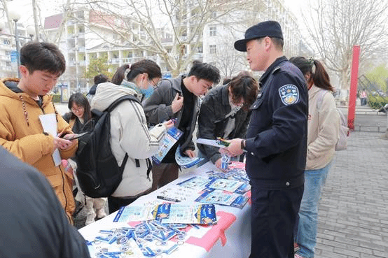 活动现场,校保卫处老师、郁洲派出所警官组织学生党员、入党积极分子志愿者发放安全知识宣传彩页,开展“筑牢安全防线,建设平安校园”宣传活动。大家深入学生群体进行“点对点”宣传,让大学生们认识到金融电信诈骗的严重危害,提高学生的知晓率,同时希望现场的大学生把此次活动的精神和自己掌握的反诈本领带给身边同学、亲友,共同构筑打击和防范电信网络诈骗的坚实防线。大学生们在校园反诈承诺签名条幅上郑重签名,许下自觉抵制诈骗、防范诈骗,共同创建“无诈校园”的庄严承诺。