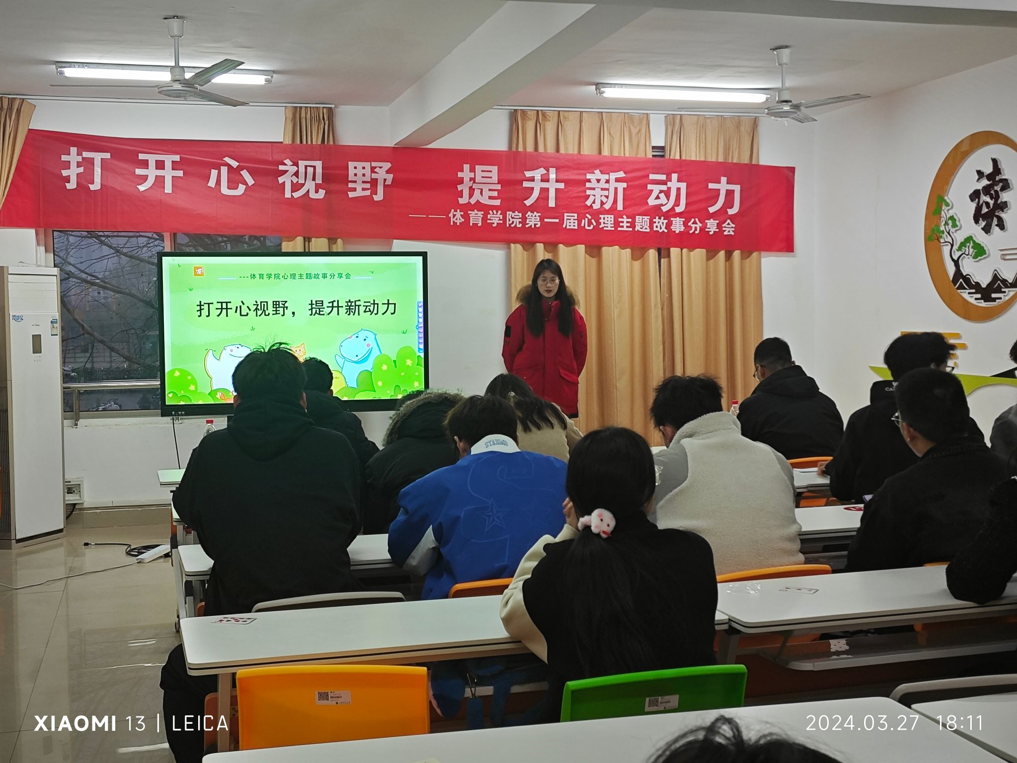 体育学院“打开心世界,提升新动力”第一届心理主题故事分享会于3月27日在学生一站式社区举行,本次活动由校心理中心李静妍,创新创业学院孙士生和我院仝友鹏三位老师担任评委嘉宾,共有16名选手参赛。