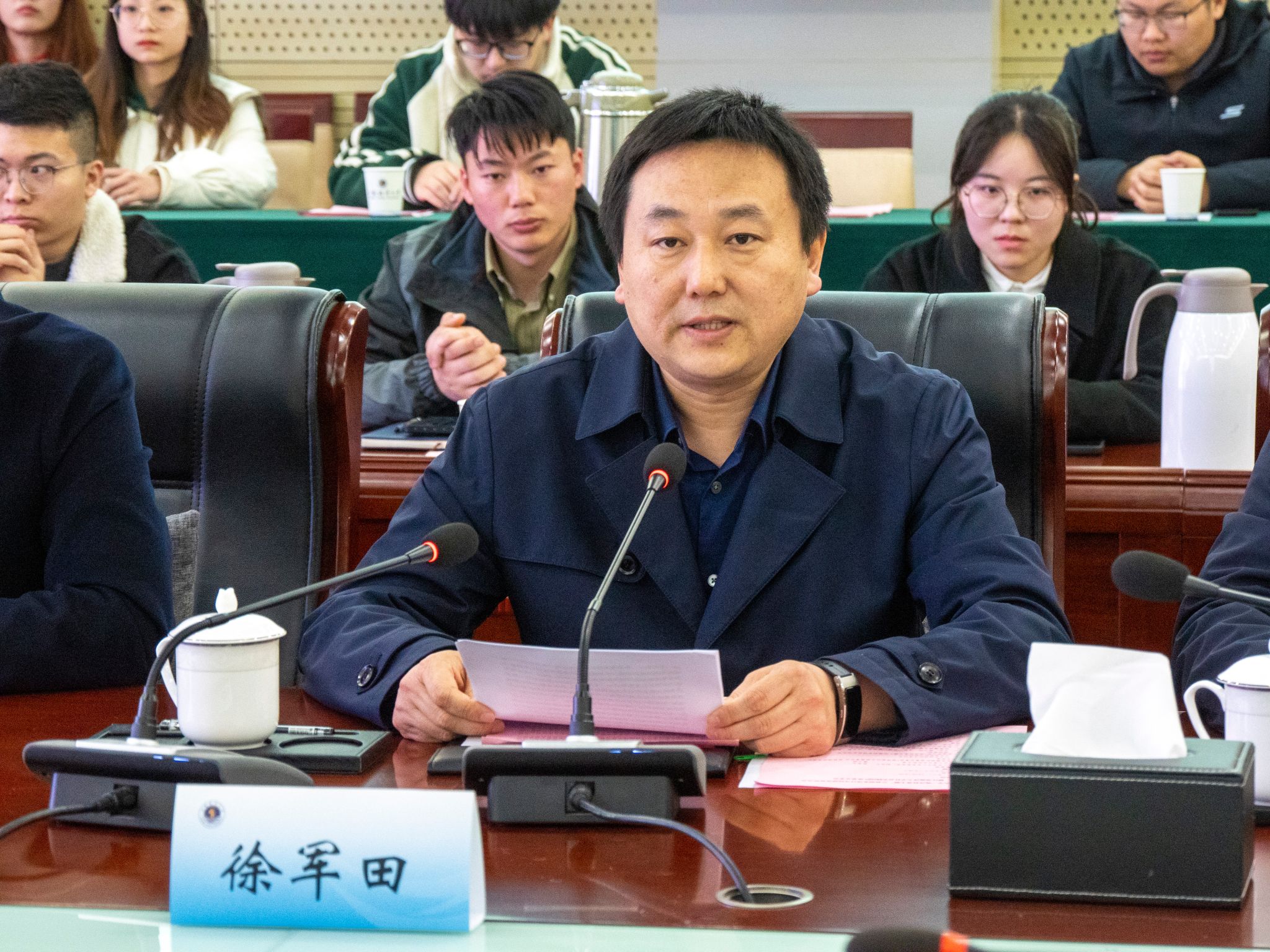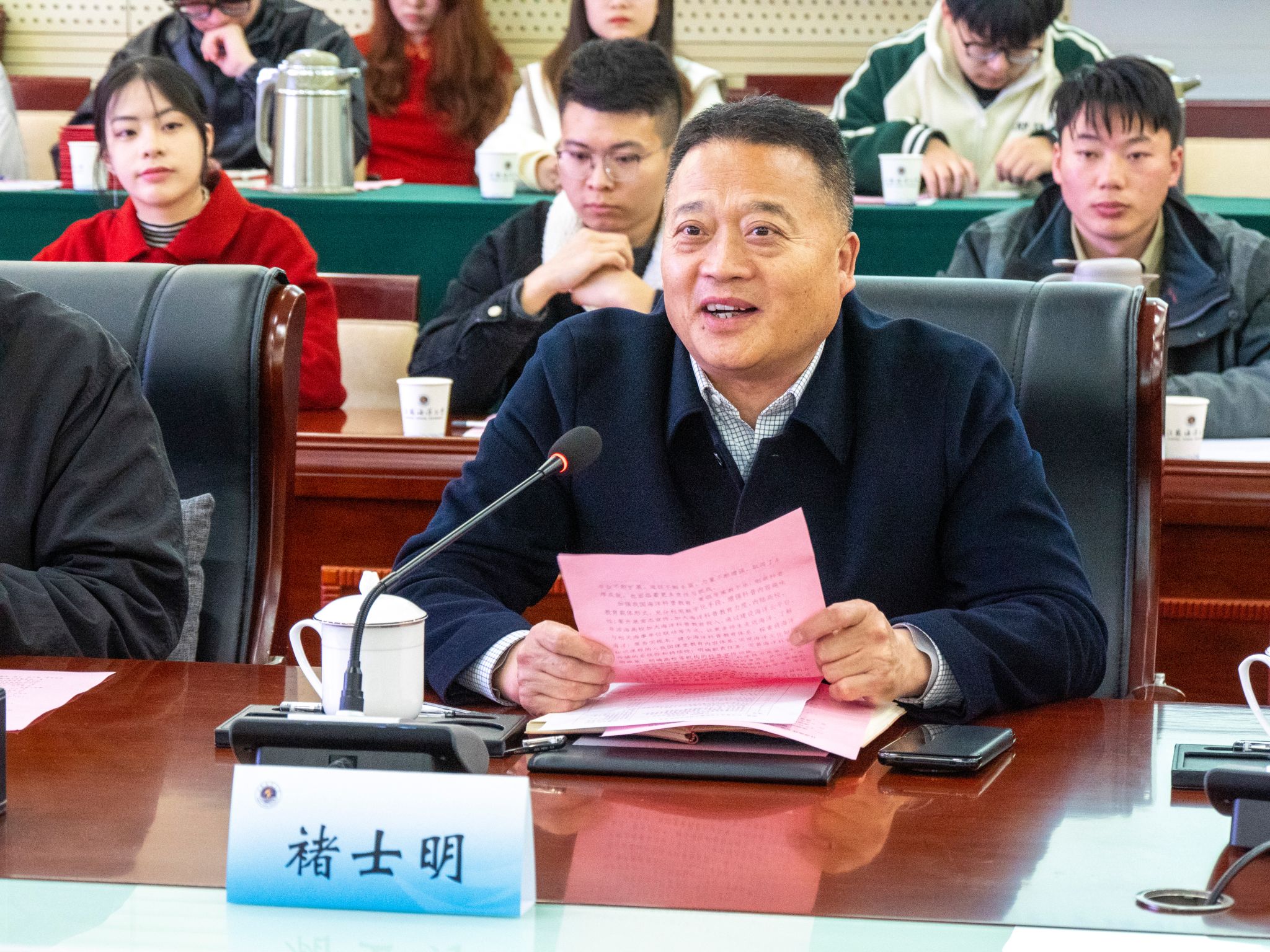 会议伊始,徐军田、褚士明分别致辞讲话。徐军田介绍了我校发展状况,对本次合作许以期盼,他指出:“此次合作不仅对我校今后的海洋建设、公益创业工作具有重要意义,也能推动我市乡村振兴、科普教育事业蓬勃发展。”褚士明也表示科学技术是第一生产力,科学技术的发展离不开科技知识的普及,希望能通过本次合作推动连云港市海洋经济的发展,展现出一堂精彩绝伦的科普大课。