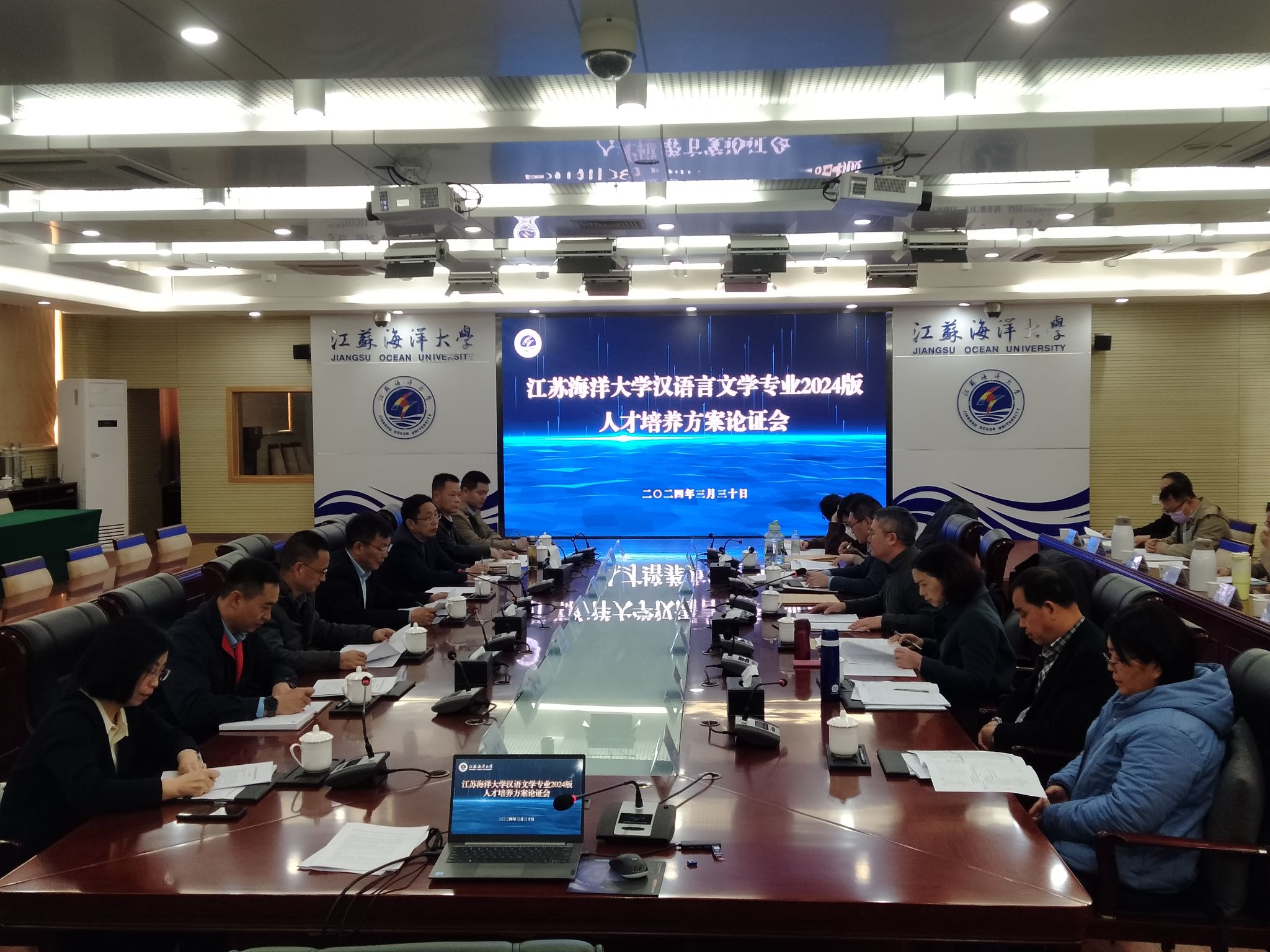 人才培养方案是实现人才培养目标、实施教学管理、引导教育教学改革的纲领性文件。为培养高素质中文人才,汉语言文学专业2024版人才培养方案论证会于3月30日下午在会议中心东海厅召开。会议由文法学院院长吴明忠主持,连云港市各行业专家、学校教务处处长、毕业生代表、在校生代表和中文系全体教师参加会议。