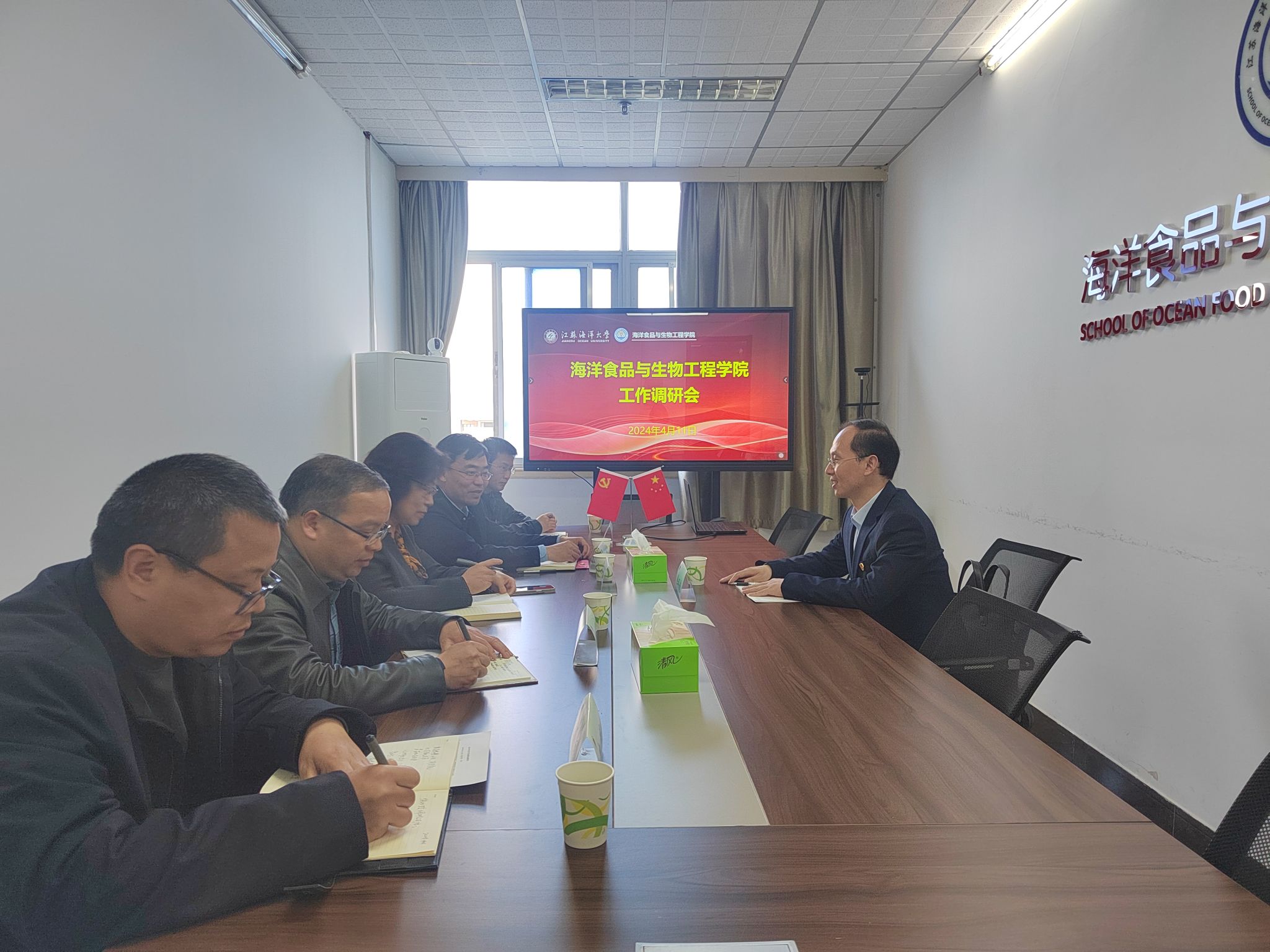 4月11日下午,校纪委书记徐双俊到联系学院海洋食品与生物工程学院调研,了解学院近期工作进展,检查教育教学审核评估准备情况,听取学院对有关工作的意见建议。学院党委书记张兵主持工作调研会。