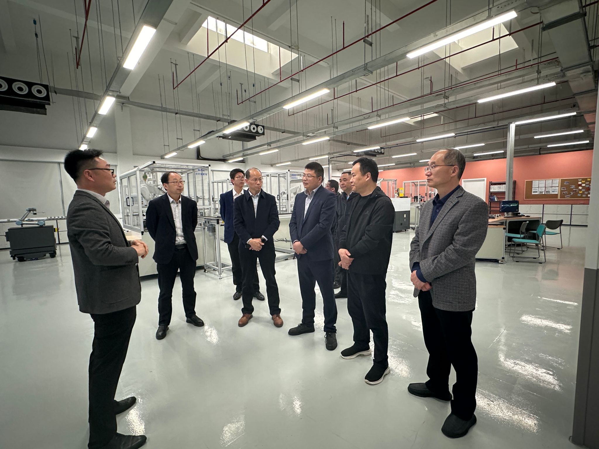 在工业4.0教学工厂,负责人详细介绍了该工厂整体运行、如何对接德国先进制造技术的前沿发展、创新校企合作模式、实现“人才+技术”融合供给等方面的情况。朱国军仔细询问了教学工厂的建设过程、运行模式和发展规划,详细了解了教学工厂师资和课程设置等。朱国军表示,我校致力于培养具有海洋意识、创新精神、家国情怀的复合应用型人才,服务于地方经济发展,中德合作双元制“校政企行”四位一体深度合作,给我校人才培养提供了很好的经验和启发。