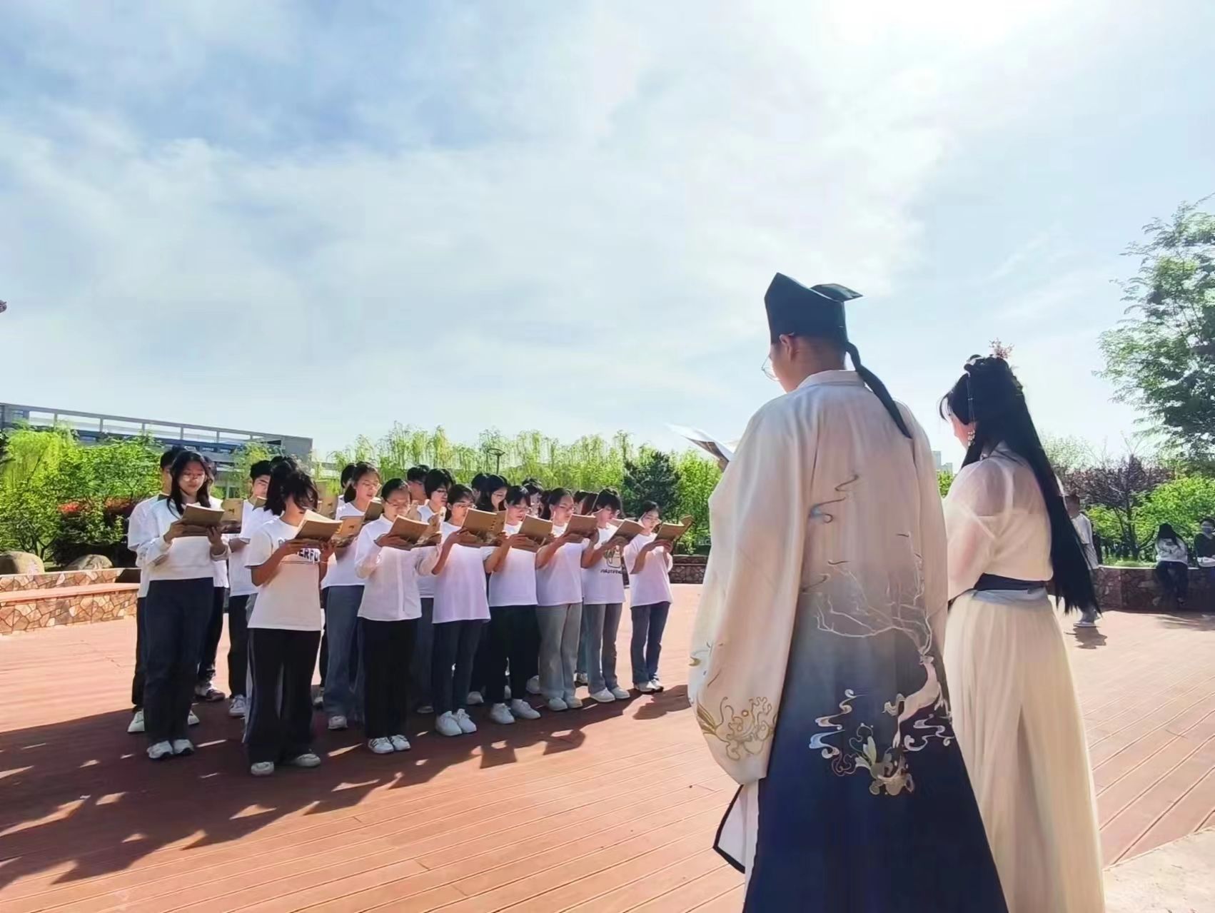 图书馆携手读者协会部分学生,并与百年德平书店通力合作,开展第六届全国“相约《论语》文化中国----世界读书日 人人读《论语》”活动。江海大学子在静思湖桃李亭前,身着汉服,齐声诵读《论语》,深化了学子们对中华传统文化的认识,展现了传统文化的独特魅力。