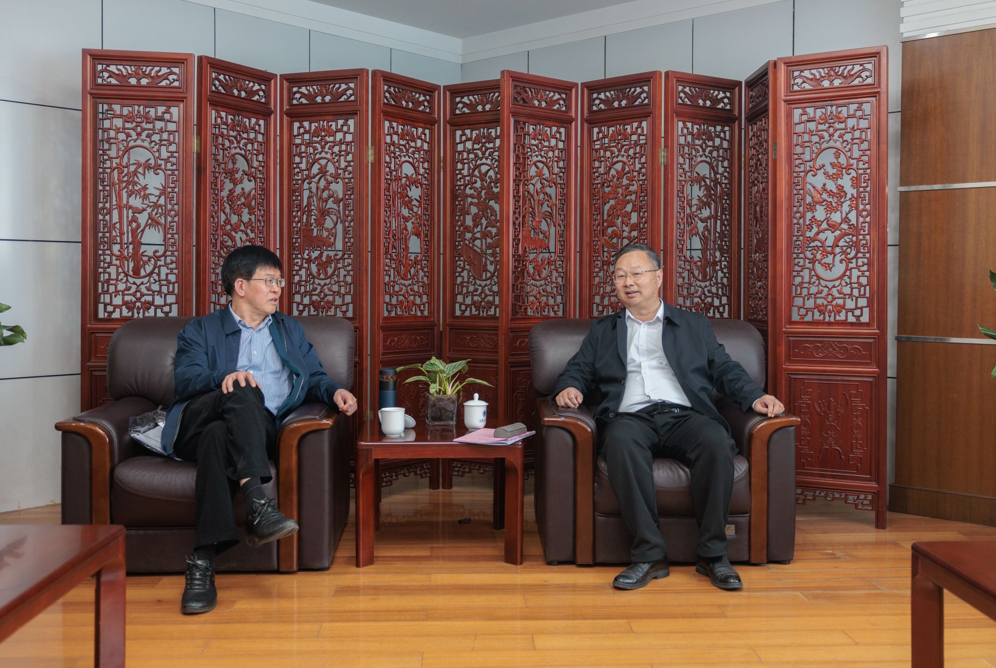 报告会前,校长宁晓明在行政楼2楼接待室接待了纪良纲教授。