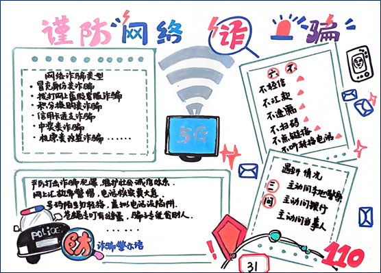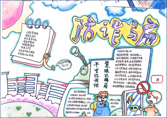 本次防诈骗手抄报活动的成功举办,充分体现了我校大学生积极向上的精神风貌和较强的自我教育意识。通过此次活动,我校学生更加深入地了解了诈骗的危害和防范方法,纷纷表示今后将更加注意保护自己的信息及财产安全。同时也会将防诈骗知识传播给身边的人,共同筑牢防范诈骗的防线。