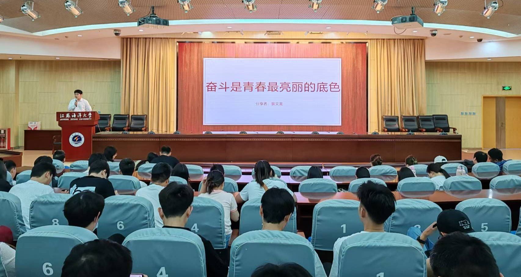 江苏省“优秀学生干部”称号获得者——海洋科学与水产学院2022级研究生蒋壮以《厚植信仰 星火滚烫》为题,从“故事起源——思想篇”“砥砺研思——学习篇”“实干笃行——实践篇”三个方面分享自己入伍、学习科研、社会实践和志愿服务的经历和心得,重点讲述了自己担任学生干部的经历和体会,强调了团队合作、责任担当的重要性,作为学生干部,要时刻关注同学们的需求,积极为大家服务,同时也要摆正位置,不断提升自己的组织协调能力和沟通能力,做到事事有回应,成为有担当有作为的学生干部。该生目前担任校研究生会主席团成员、海洋科学与水产学院研究生会主席团成员和研究生第二党支部宣传委员,荣获发明专利实审4项、二等学业奖学金1次、三等学业奖学金1次,以及2023年江苏省第二届社会实践与志愿服务十佳研究生提名奖、2024年校“优秀研究生干部”、2022年徐州市丰县疫情防控优秀志愿者等殊荣8项,第三届全国大学生数据分析科普竞赛一等奖等学科竞赛4项以及志愿服务证书多项。