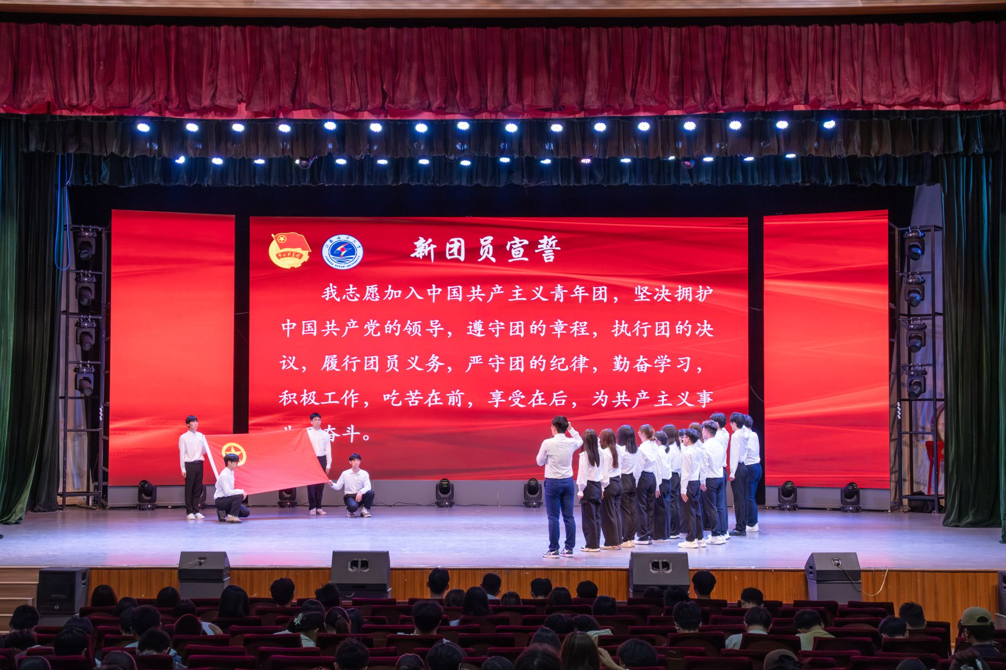 团员代表梁勇卿带领新团员面向团旗庄严宣誓,以蓬勃的青春力量向团组织表明为共产主义事业奋斗终身的坚定信念。团员代表黄建锟宣读了《团章》中有关团员权利和义务的条款,号召新发展团员规范自身行为,担当时代责任。