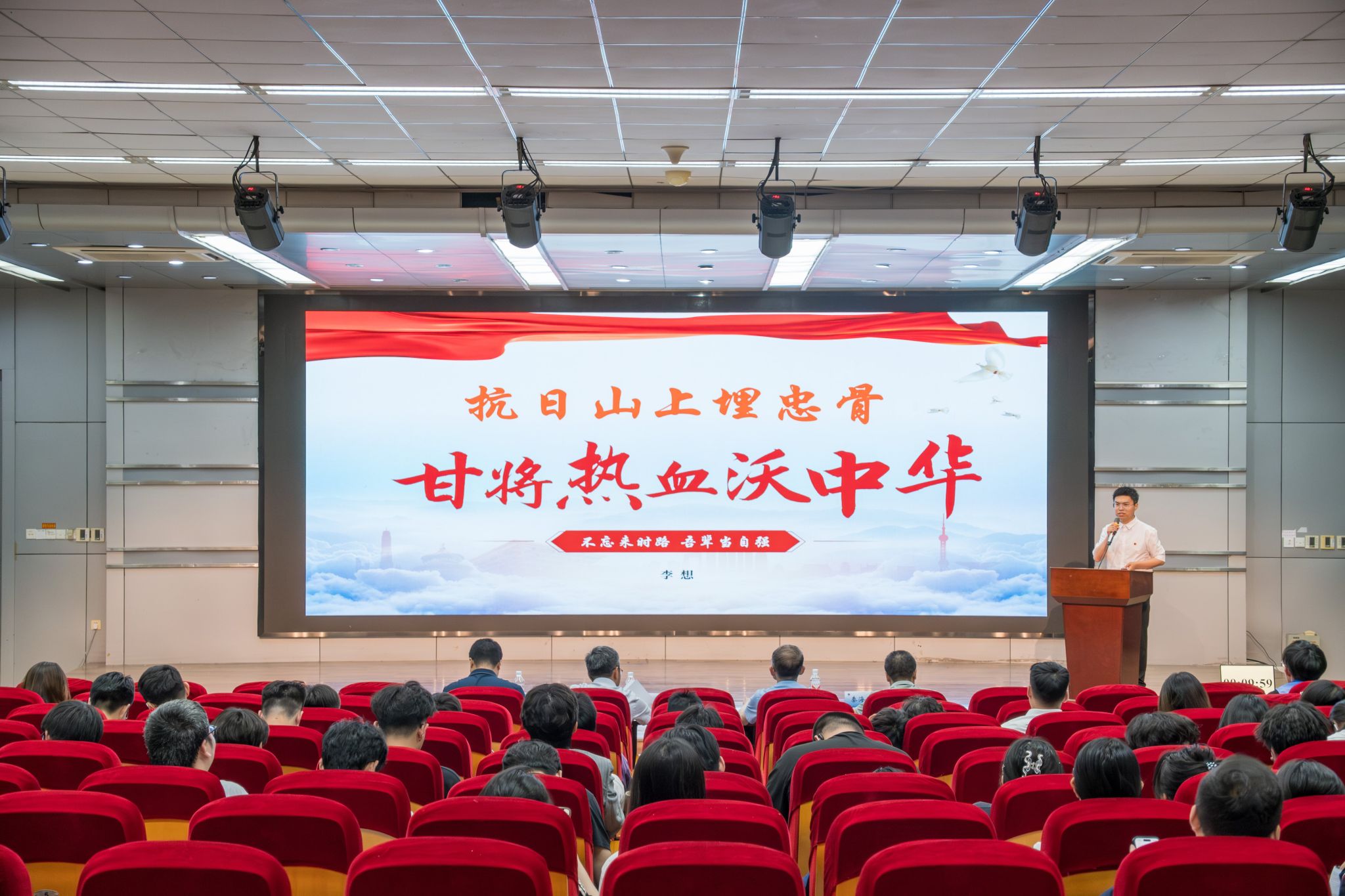 文法学院团委副书记李想以《抗日山上埋忠骨,甘将热血沃中华》为题,通过讲述“一座山,一群人,一种精神”,阐述了伟大抗战精神。生逢新时代,青年大学生要从新的视角理解抗战精神,持续学习,以实际行动践行使命担当。计算机工程学院团委书记苏琴以《弘扬家国情怀,担当时代使命》为主题,用一串串的数字、跨时空对话切入主题,带领同学们重温了抗美援朝的那段历史。乡村振兴靠人才,人才培养靠教育。海洋科学与水产学院青年博士穆亮亮用自己的亲身经历讲述着连云港乡村振兴、乡村教育振兴的发展过程及其重要意义。艺术设计学院团委书记徐熙檳用一幅幅充满着文化底蕴的文物图片、一个个蕴含中华优秀传统文化的优秀作品讲述了中国人的文化自信。
