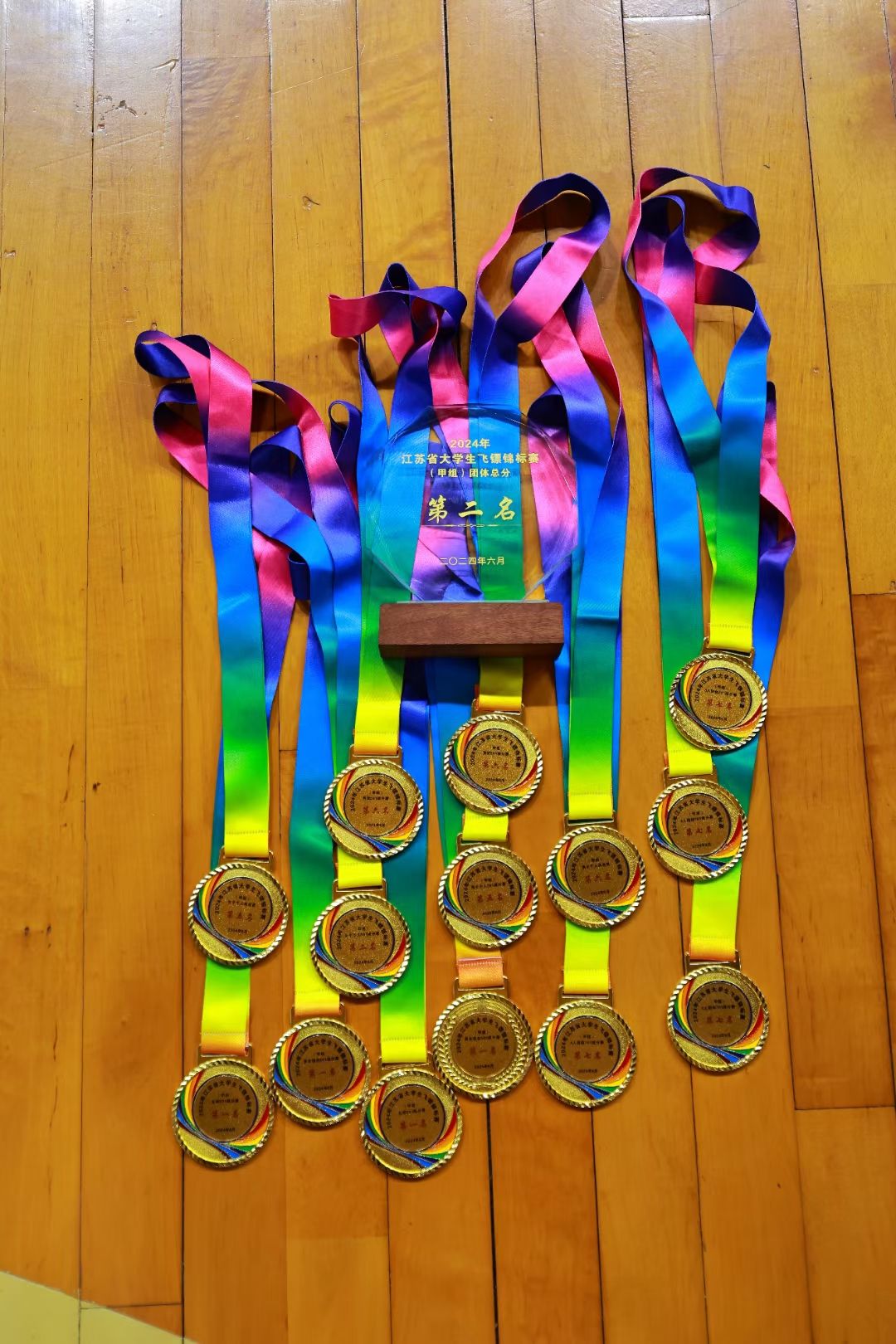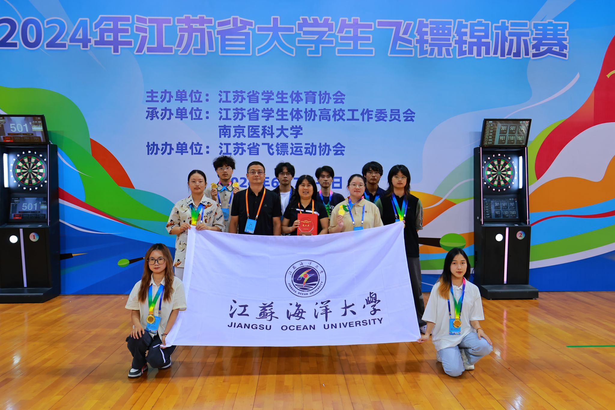 6月7日至9日,2024年江苏省大学生飞镖锦标赛于南京医科大学江宁校区体育馆有序开赛,来自江苏省的42支高校代表队、300余名运动员参加本次赛事。我校共派出10名运动员参加全部9个项目的角逐。