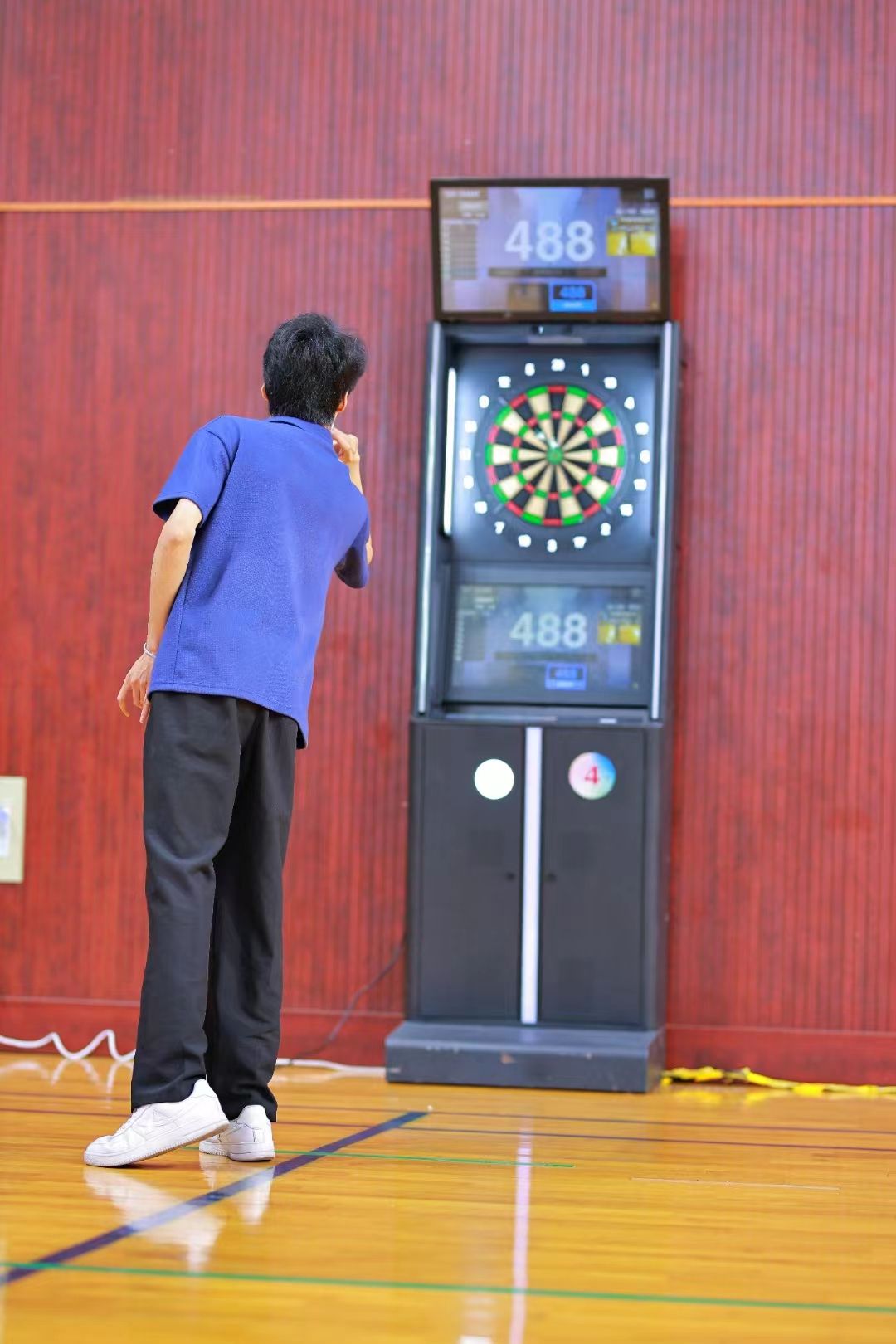 本次比赛分为甲、乙两个竞赛组,展开男、女个人501减分赛,男、女个人米老鼠,男、女双人501减分赛,男女混合501减分赛,男女混合米老鼠,4人团体701减分赛的角逐。赛场上,参赛选手屏气凝神,瞄定目标,果断出镖,一套动作干净利落,行云流水。刹那之间,飞镖划出一道优美的弧线,牢牢钉在镖盘上。运动员们不断创造出正中靶心的精彩场面,引得赛场上欢呼声此起彼伏。