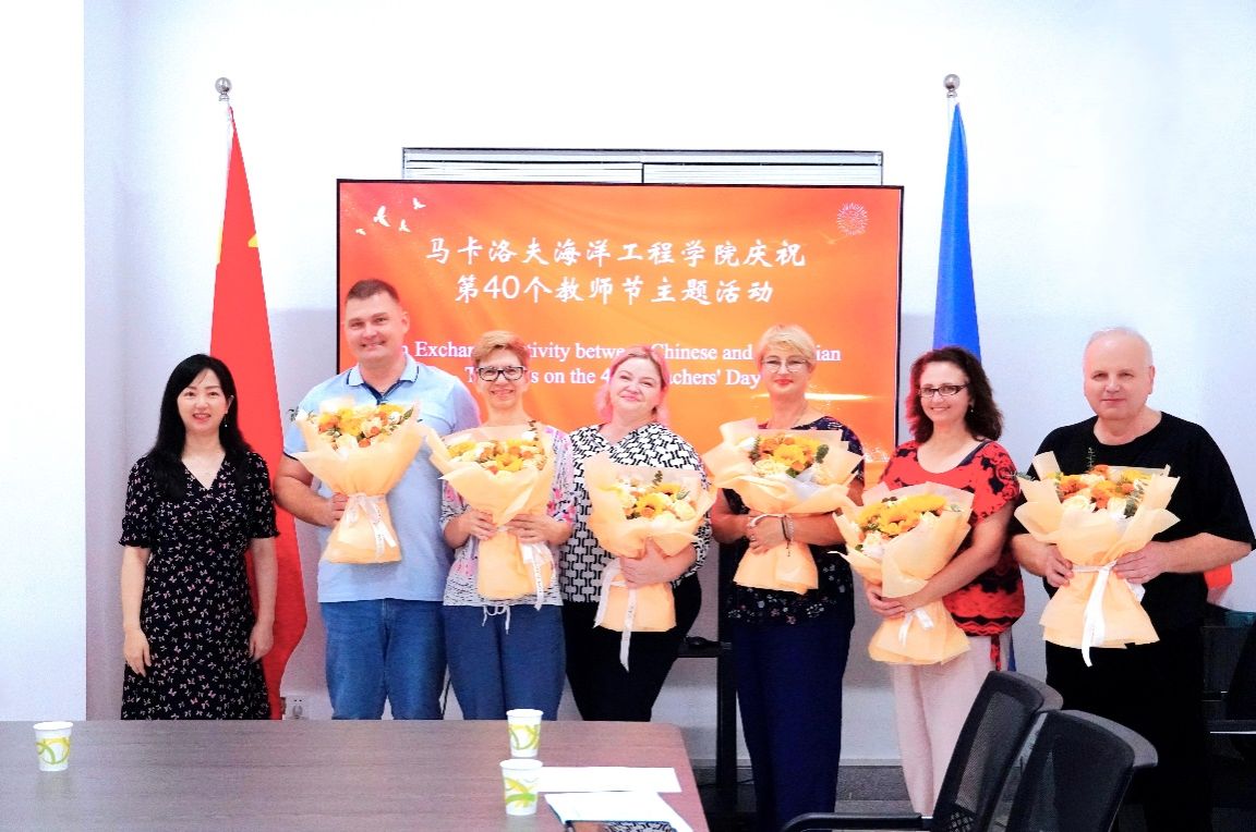 徐岚为来自乌克兰马卡洛夫国立造船大学的外籍教师送上鲜花和节日祝福,对他们为推进两校合作办学付出的努力表示感谢。徐岚介绍了马卡洛夫海洋工程学院的办学历程与发展态势,结合国际化课程教学改革、提高教学管理、加强质量监控向外籍教师提出工作期望。徐岚鼓励外籍教师继承和发扬中乌传统友谊,结合自身教学经验,发挥科研优势,为两校合作办学继续做出积极贡献。外方教师分享了乌克兰教师节的庆祝方式和教育理念,结合自身工作实践对两国在课堂教学、学生管理、专业实习、师生关系等方面的异同发表了感想。