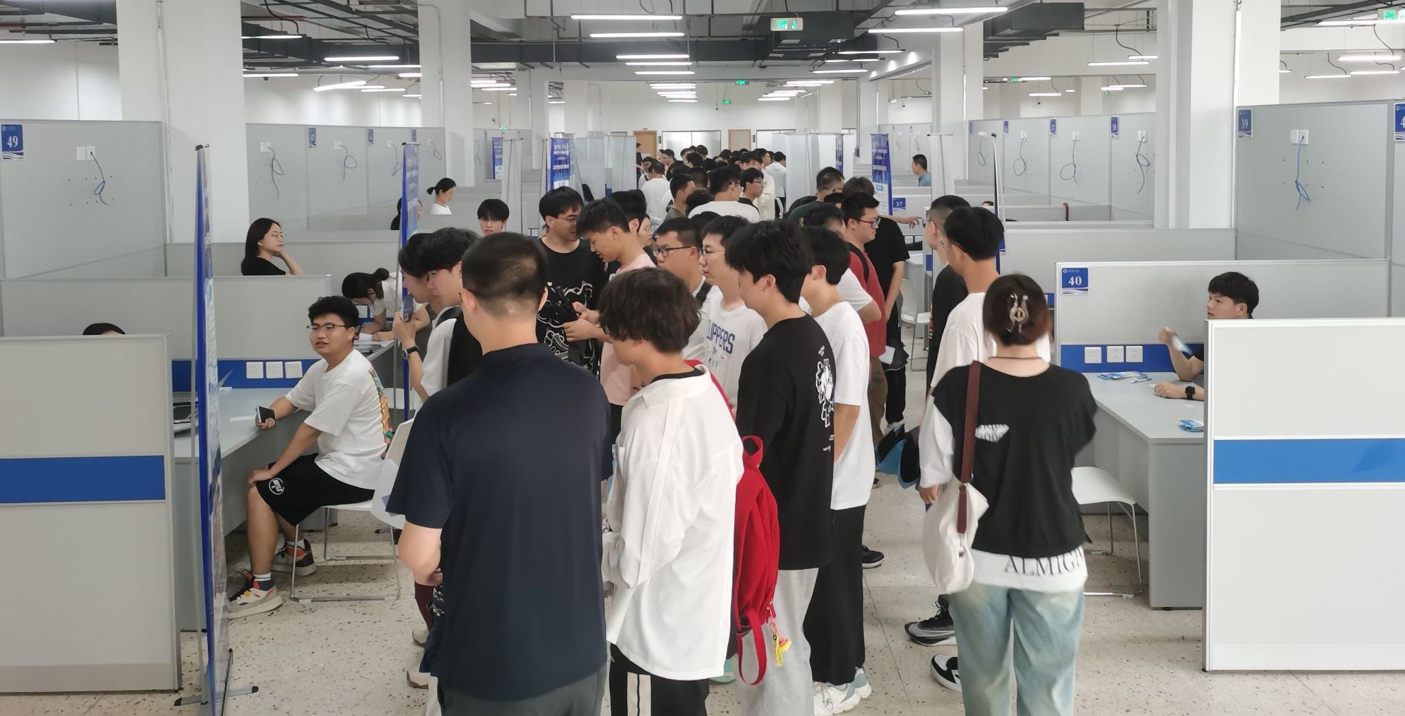 9月11日,我校2024年秋季校园招聘活动拉开序幕,首场专场招聘会在校就业服务大厅举行。江阴市人社局带领21家当地优质企业,为我校毕业生带来了337个高质量岗位。次日,常熟市与太仓市招聘团的27家重点企业也带来了497个岗位,为我校毕业生提供了更多优质岗位选择。招聘会现场人潮涌动,毕业生们排着长队等待面试,招生与就业处负责人、各学院负责人及辅导员老师与人社部门及招聘企业进行深入交流和对接。