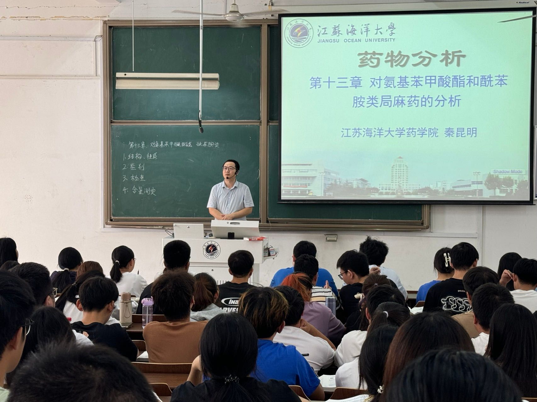 为推动产教融合教学创新,搭建教师相互交流学习平台,充分发挥优秀教师示范和带动作用,促进教师教学能力提升,9月30日上午,教师教学发展中心在苍梧校区文通楼205教室举办了产教融合课程教学示范观摩活动。本次示范课由省级产教融合一流课程——《药物分析》负责人、药学院副院长秦昆明教授主讲,并邀请恒瑞医药股份有限公司新药研发工程师徐雷总监联合授课。来自各学院的30位教师参加了观摩学习。