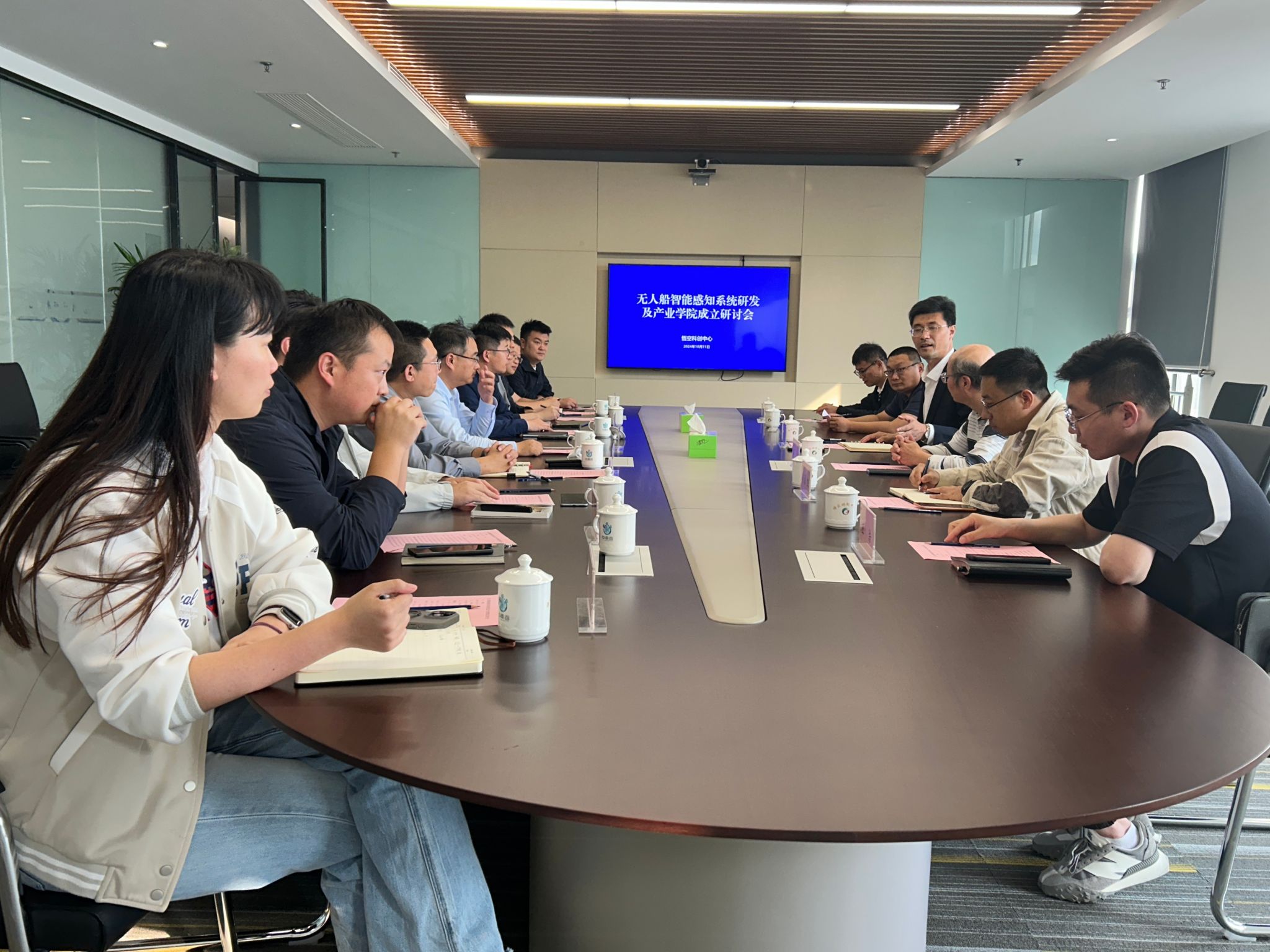 10月11日下午,海洋技术与测绘学院院长孙佳龙率队,一行5人到连云港悟空科创中心,参加连云区无人船智能感知系统研发及产业学院推进研讨会。连云区政府党组成员、江苏省海洋资源开发技术创新中心常务副主任赵桂,连云区科协主席、区委人才办副主任张体洋,连云经济开发区党工委委员、党群工作部部长王禹善,连云经济开发区党群工作部副部长徐冬冬,连云港仓潮智绘科技有限公司总经理程晨、副总经理陈裕,悟空科创中心总经理薛凯峰、运营经理杨慧敏,海洋技术与测绘学院院长孙佳龙、周立教授以及王晓、冯成凯、田祥雨3位博士参加交流会。会议由薛凯峰主持。