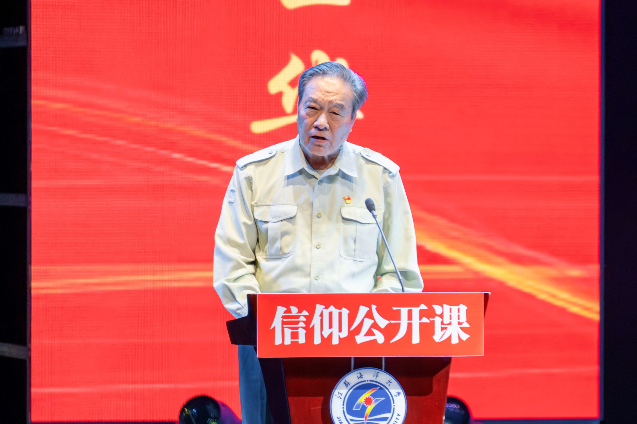 10月16日下午,苍梧校区大礼堂,由校关工委和团委精心策划的信仰公开课在嘹亮的《歌唱祖国》歌声中拉开了帷幕。校党委副书记、校关工委主任李梅英、校关工委常务副主任史顺良、校关工委领导班子成员、校关工委委员单位负责人和800余名师生同上一堂思政大课,聆听离退休老战士、老模范、老教授和青年博士的精彩分享,感悟爱国情怀,凝聚奋进力量。
