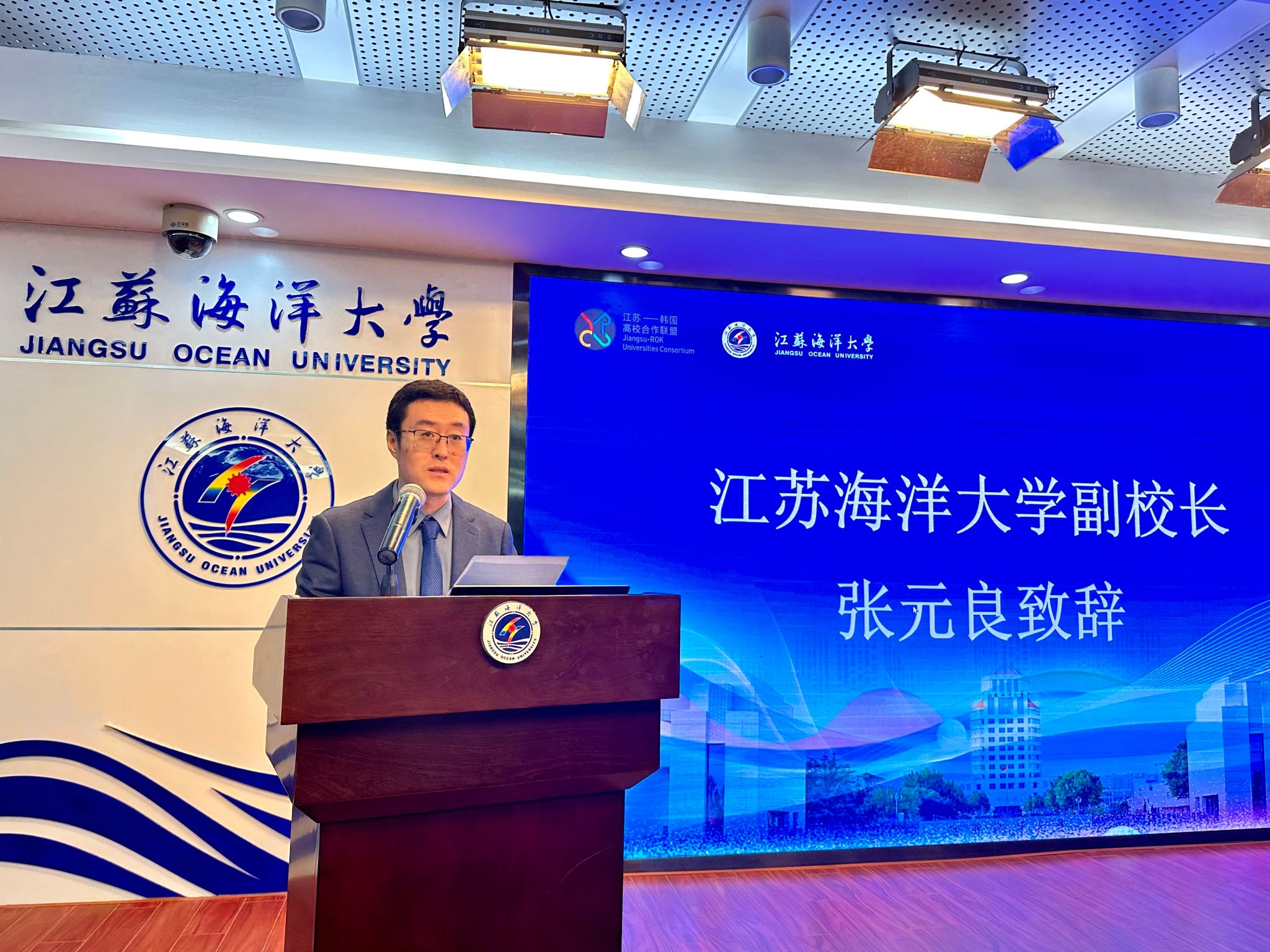 张元良向各位与会代表表示欢迎,并简要介绍了学校在学科建设、人才引育、科技创新等方面的总体情况与最新进展。他表示,我校一直以来与韩国高校保持友好交往,先后与12所韩国高校建立了合作关系,年会前一日与韩国国立木浦海洋大学签署了合作备忘录,进一步扩大和加深了我校与韩国涉海高校间的友好合作与交流互鉴。我校在2021年加入联盟,接下来,我校将继续与联盟各成员高校一起,持续拓展与韩国高校交流合作,携手推动联盟建设再上新台阶,为推进江苏与韩国高等教育合作发展注入新活力,贡献新力量。