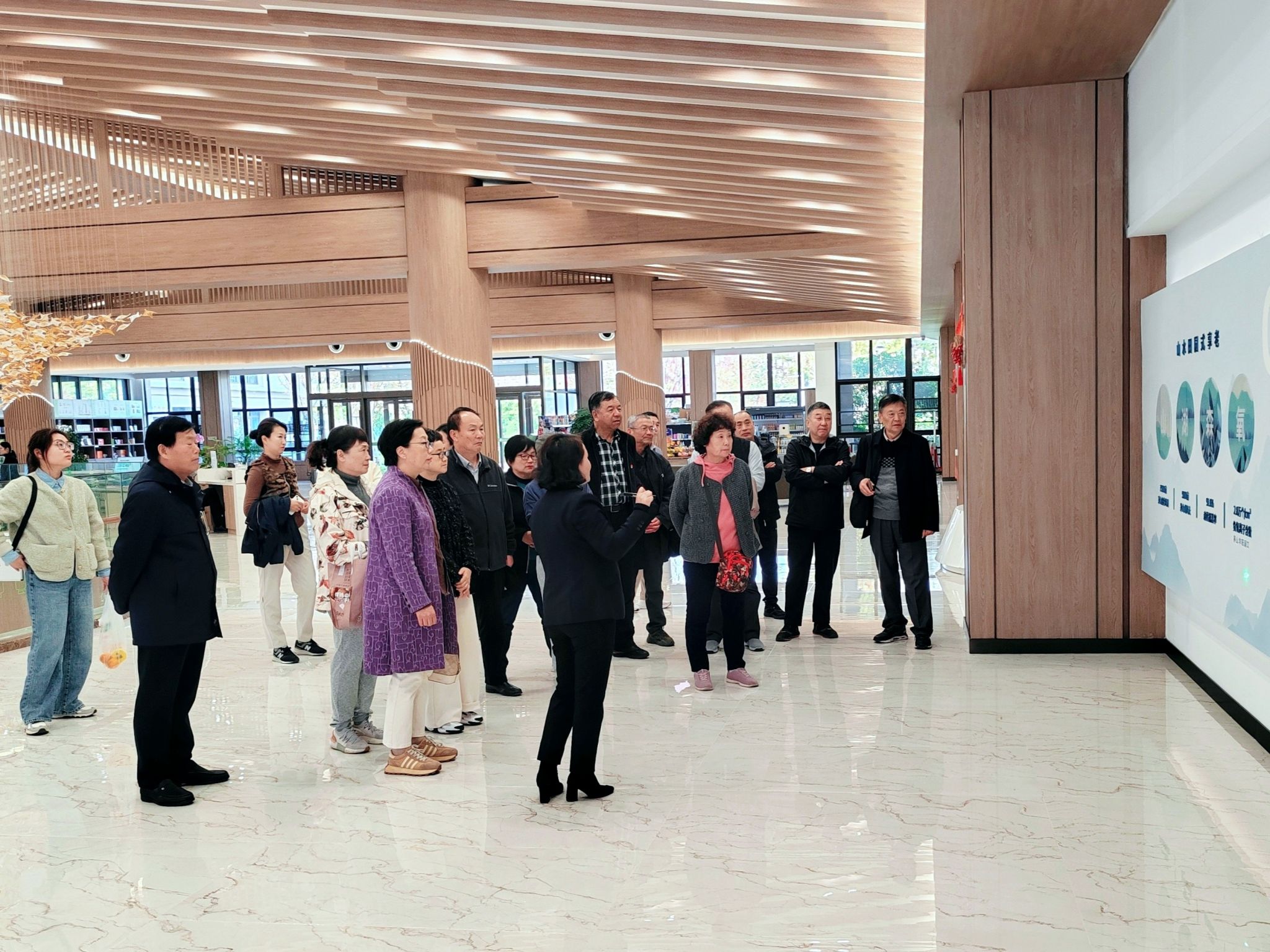 在颐养中心经理周闻立、韩琍的陪同下,调研组一行考察了颐养中心的养老合院、养老公寓、中医理疗中心、康复理疗中心、小镇诊所以及文化生活配套设施,参观了医药特色公园、康缘农场等养生谷周边环境。参观过程中,调研组一行详细考察了餐厅、健身房、棋牌室、书院、茶吧、超市等情况,与管理人员以及入住的老同志互动交流,详细了解养生谷的管理运行、服务机制、和入住老同志的真实感受。大家还沉浸式体验了中医养身服务项目、中医药膳和文体活动。