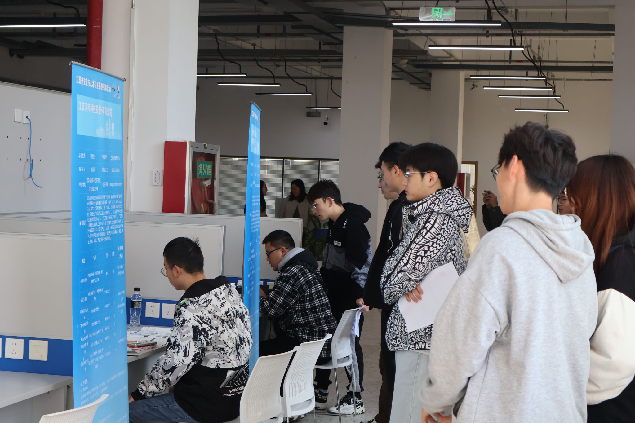 本次招聘会主要邀请了淮安市中天钢铁集团(淮安)新材料有限公司、江苏汉邦科技股份有限公司、江苏芯声微电子科技有限公司等优质企业,涉及专业广,覆盖岗位多。招聘会现场秩序井然、气氛热烈,同学们手持简历,积极与用人单位代表进行深入交流与沟通。此外,招聘会现场开设简历指导、党员示范岗、政策咨询等服务窗口,为学生提供一对一的政策解读和专业咨询。