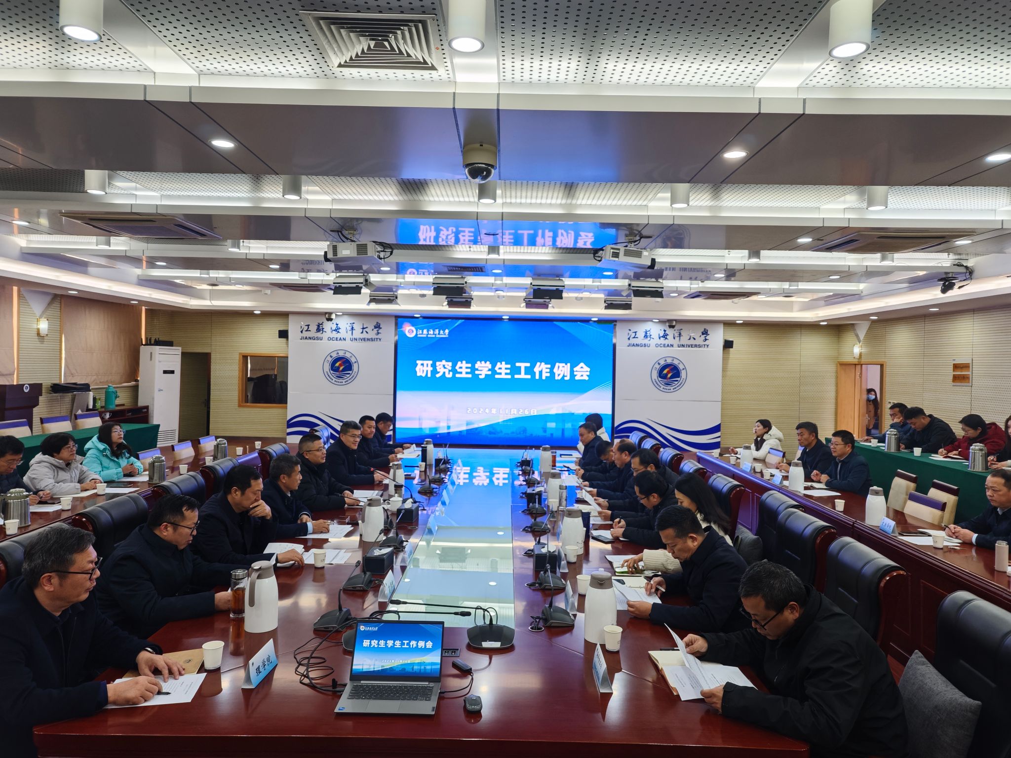 11月26日上午,我校在会议中心东海厅召开2024年秋季学期研究生学生工作例会。会议由副校长朱国军主持,各研究生培养学院党委书记、研究生辅导员以及党委研究生工作部、研究生院全体成员等40余人参会。