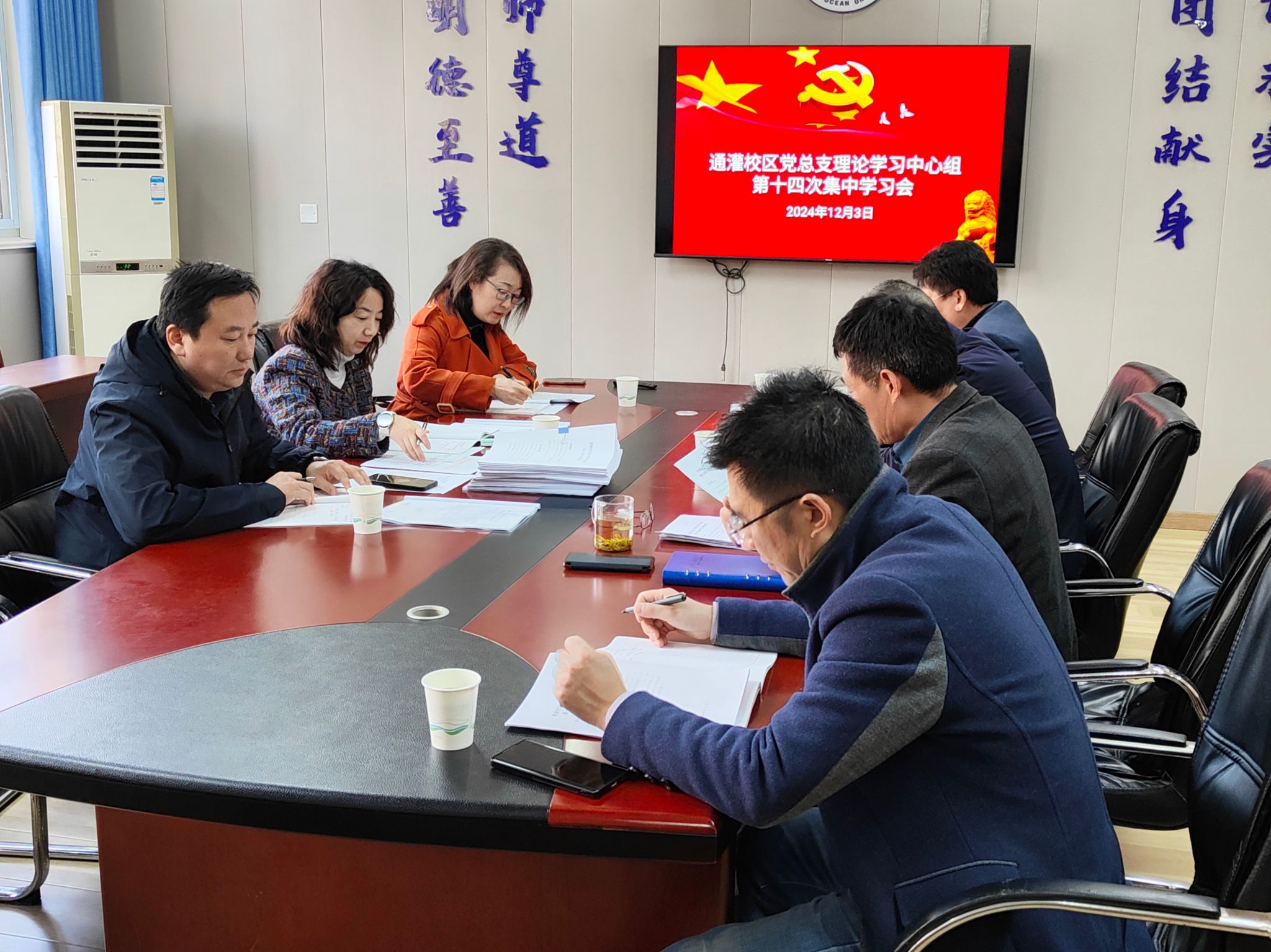 12月3日下午,通灌校区党总支理论学习中心组以“学习领会习近平总书记重要讲话精神,紧扣工作重点,努力推进学校高质量发展”为主题开展第十四次集中学习。会议重点学习了习近平总书记在省部级主要领导干部学习贯彻党的二十届三中全会精神专题研讨班开班式上和在中共中央政治局第十七次集体学习时发表的重要讲话精神,认真学习了习近平总书记给中国海洋大学全体师生,给中国国际大学生创新大赛参赛学生代表回信以及向2024世界中文大会致贺信等内容,传达学习了《江苏海洋大学领导干部插手干预重大事项记录报告暂行规定》。继续教育学院院长舒伟、大学科技园主任马超分别结合学习内容和工作实际进行重点发言。通灌校区党总支书记仲崇宏向巡学旁听组汇报了2024年党总支理论学习开展情况。