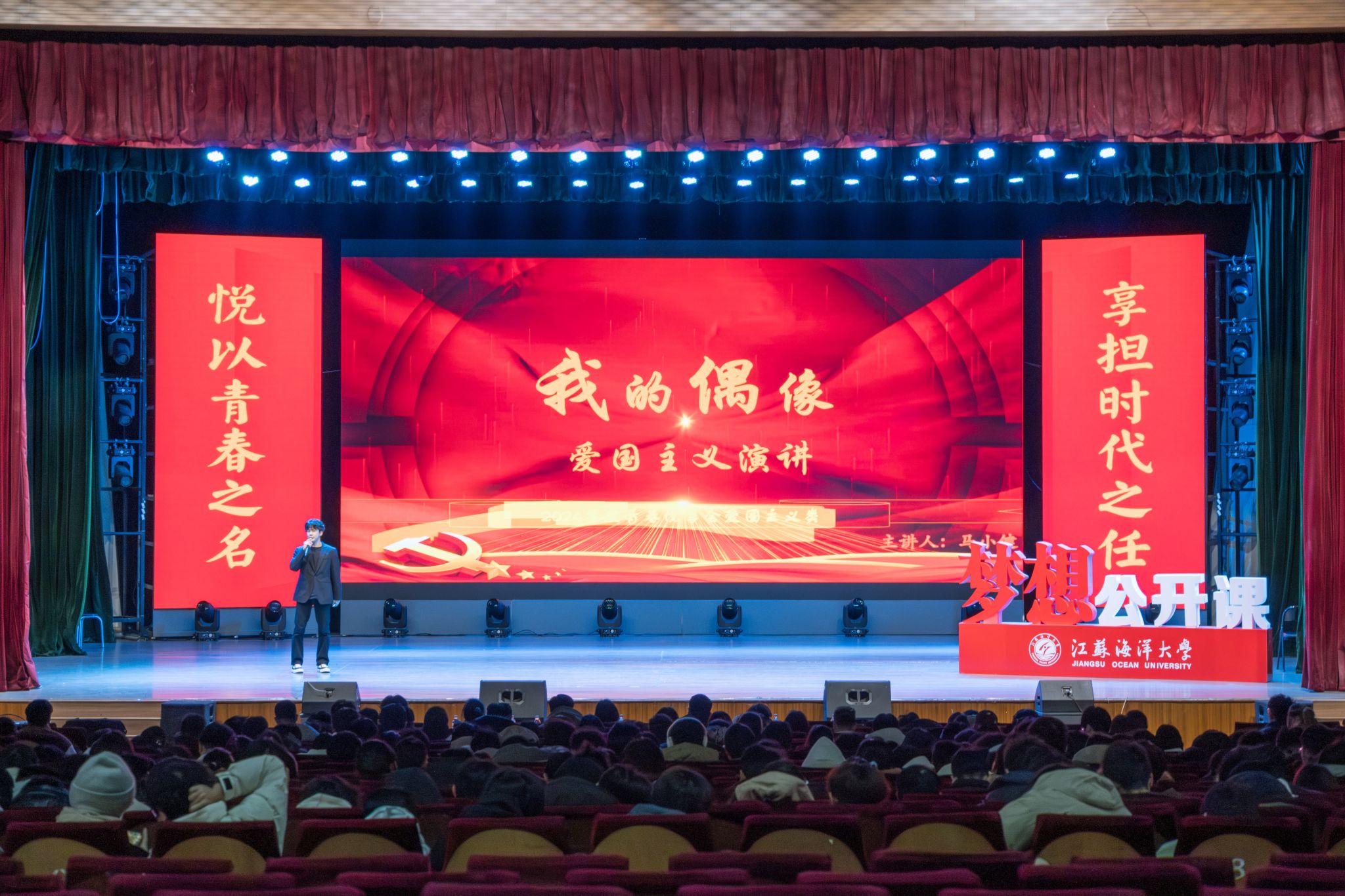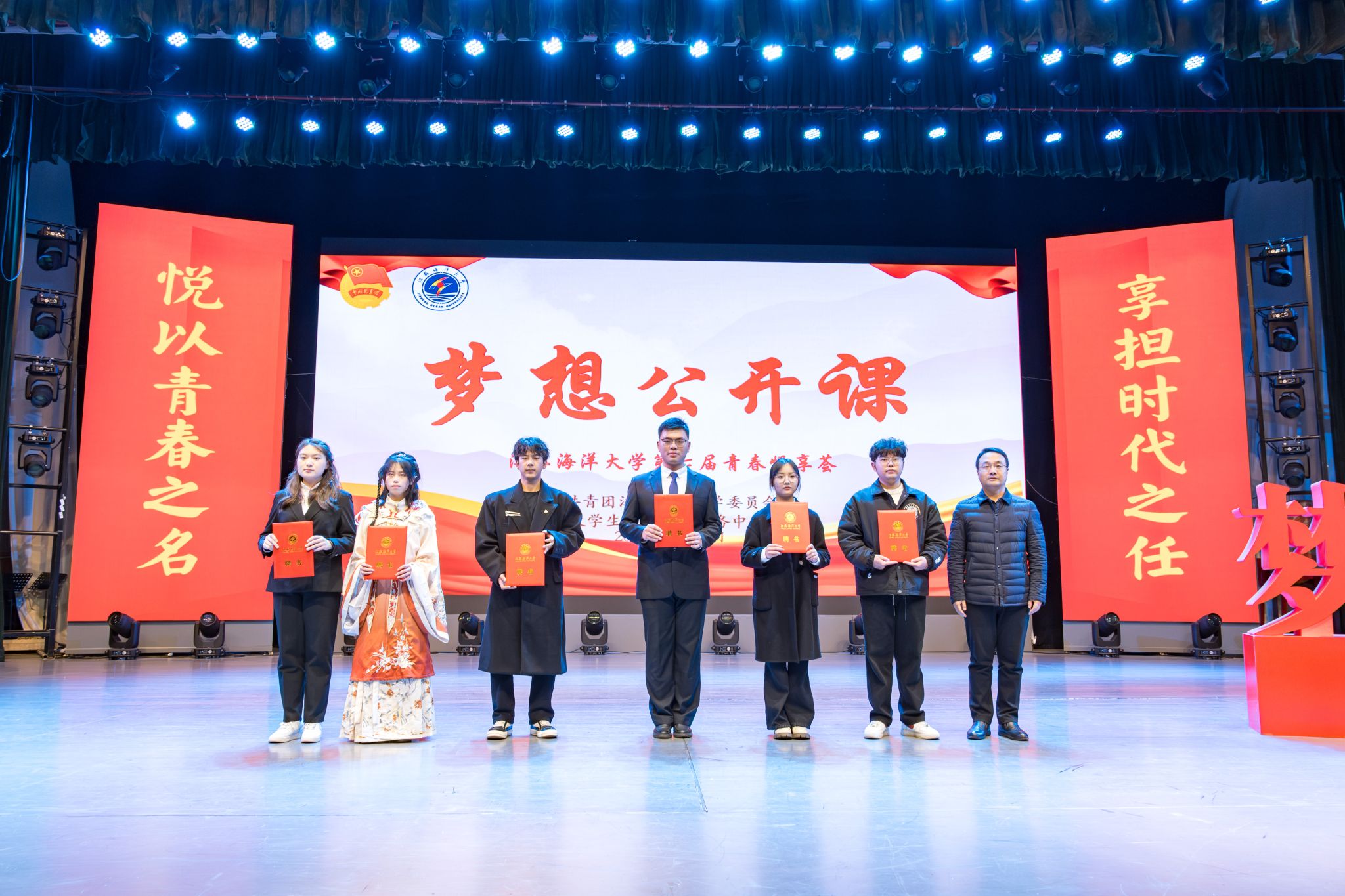为鼓励青年大学生敢于有梦、勇于追梦、勤于圆梦,12月4日,江苏海洋大学2024年“青春悦享荟”主题梦想公开课在大礼堂举办。各学院代表600余人参加本次活动。校团委书记黄吉庆参加活动并为8位主讲人颁发“青春悦享达人”聘书。