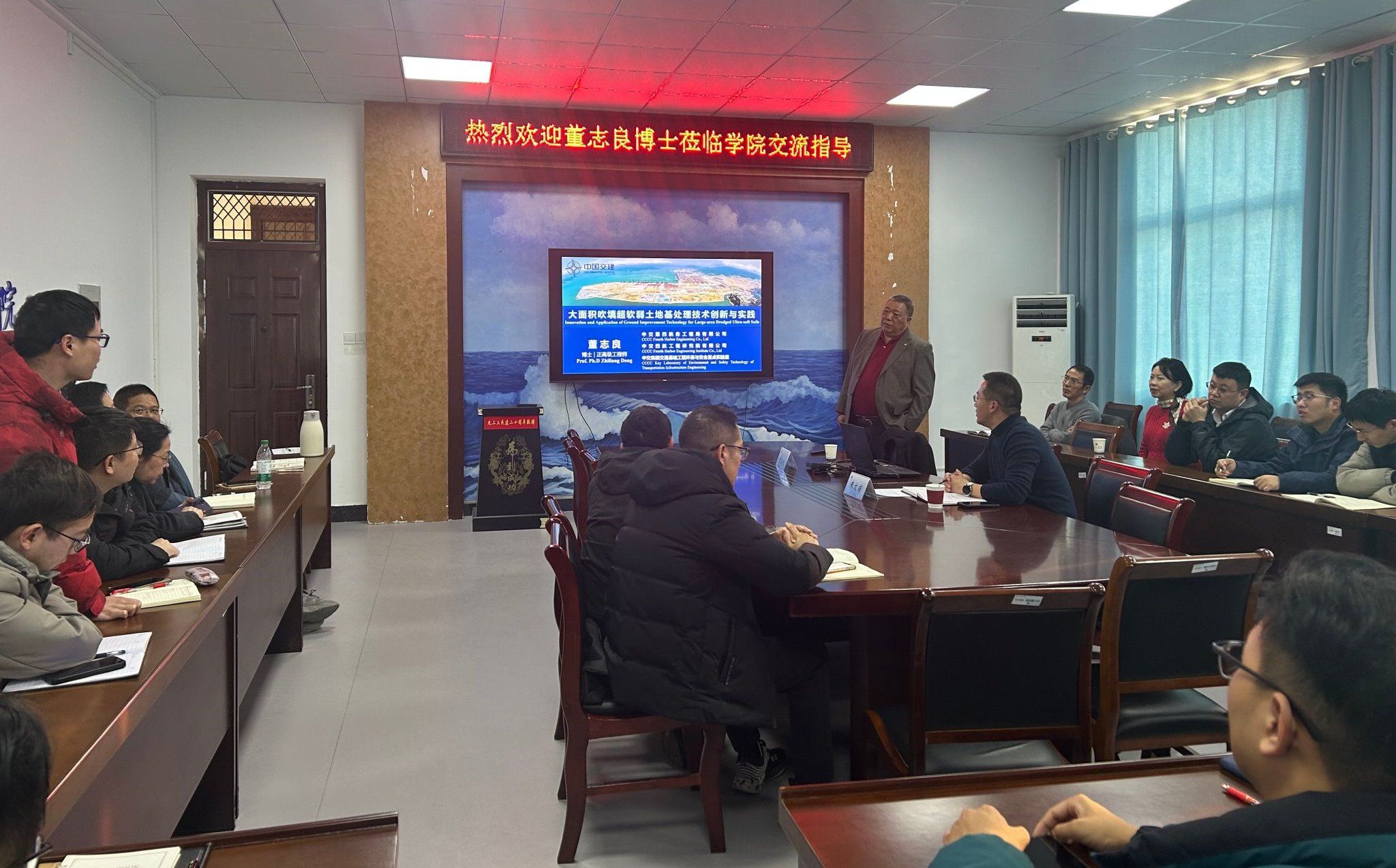 为加强学院师生在海洋岩土工程领域的创新意识和能力,激发学习兴趣和研究热情,2月19日下午,土木与港海工程学院在土木楼302会议室举办学术讲座,邀请到中交四航局首席专家董志良博士,带来了题为“大面积超软弱土地基处理技术创新与实践”的报告。学院专任教师和研究生共60余人参加了报告会,院长朱文谨主持本次报告。
