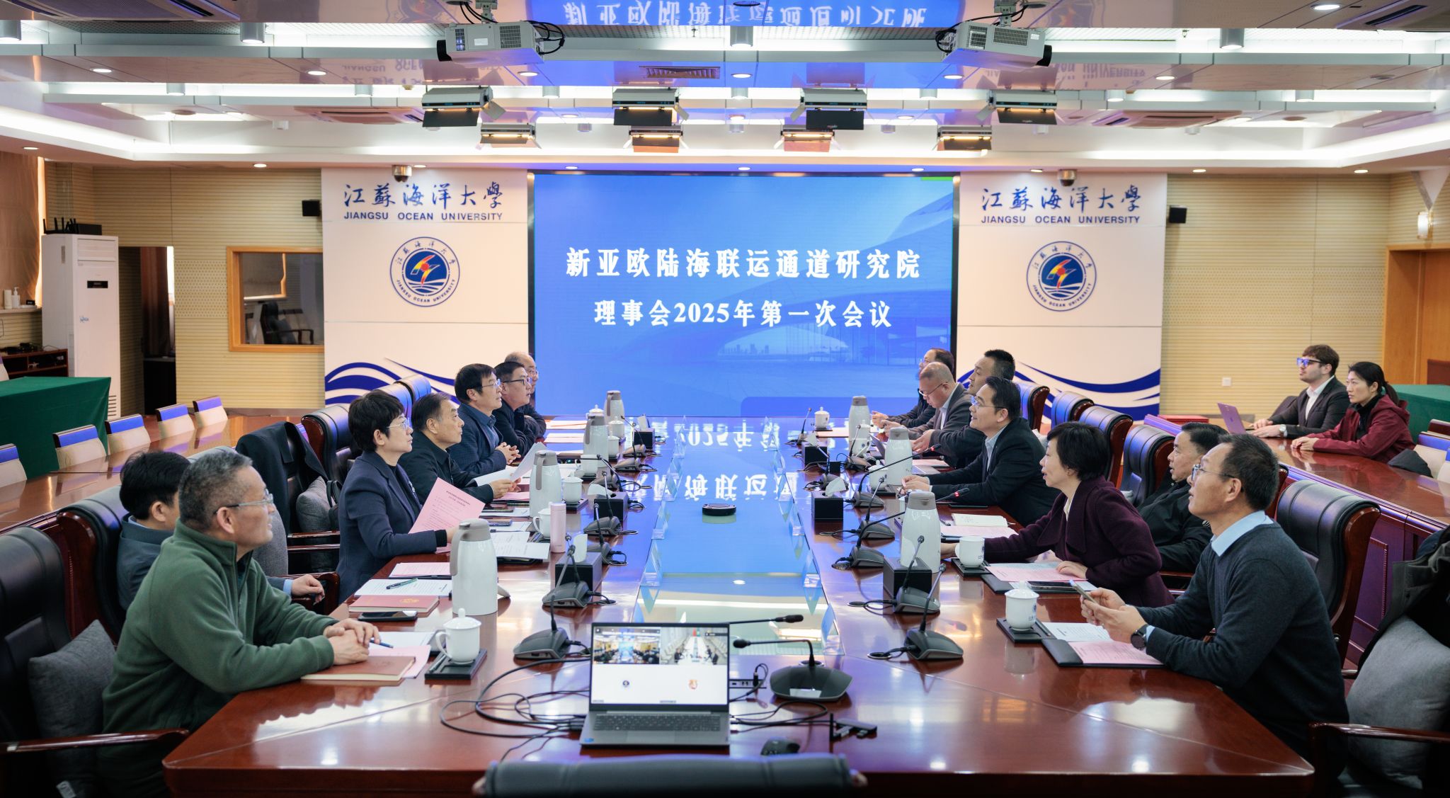 3月1日,新亚欧陆海联运通道研究院理事会2025年第一次会议在我校会议中心东海厅召开。连云港市政协副主席、新亚欧陆海联运通道研究院理事长韦怀余,连云港市政协副主席、市发改委主任李莉,阿斯塔纳国际大学校长伊尔萨利耶夫·谢里克,阿斯塔纳国际大学副校长凯拉特·阿布德拉赫马诺夫,清华大学“一带一路”战略研究院执行院长史志钦,连云港市发改委党组成员樊继强,金砖创新基地数字经济研究中心秘书长宓河力,连云经济开发区党工委委员、管委会副主任彭晨出席会议,江苏海洋大学副校长申欣主持会议。市里相关部门领导和通道研究院人员参加会议。