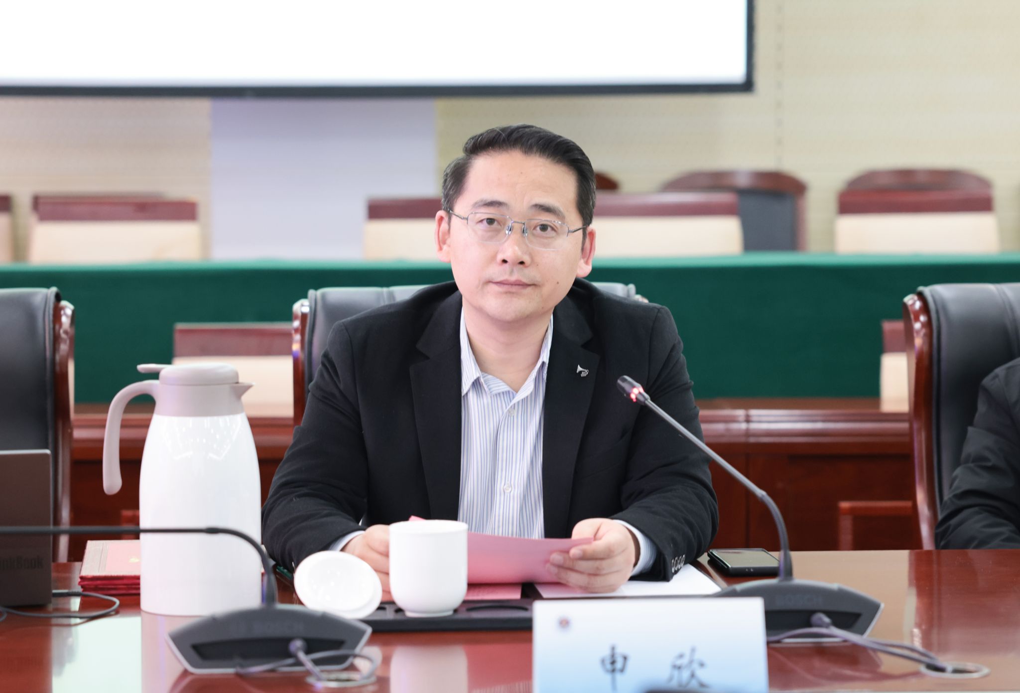 韦怀余致辞,指出研究院自第一次理事会召开以来,紧紧围绕共建“一带一路”尤其是新亚欧陆海联运通道高质量发展,在研究能力、国际合作、服务项目、自身建设等方面取得了令人满意的成绩。同时也指出,研究院下一步要主动把握机遇,聚焦关键问题,以研究促行动,以合作破壁垒,推动通道从“物理联通”迈向“规则联通”和“智慧联通”,应重点从深化课题研究、当好决策智囊,拓宽交流渠道、推动务实合作,促进成果转化、服务实践应用,强化资源整合、构建协同网络,加强自身建设、推动可持续发展等方面进一步开展工作。