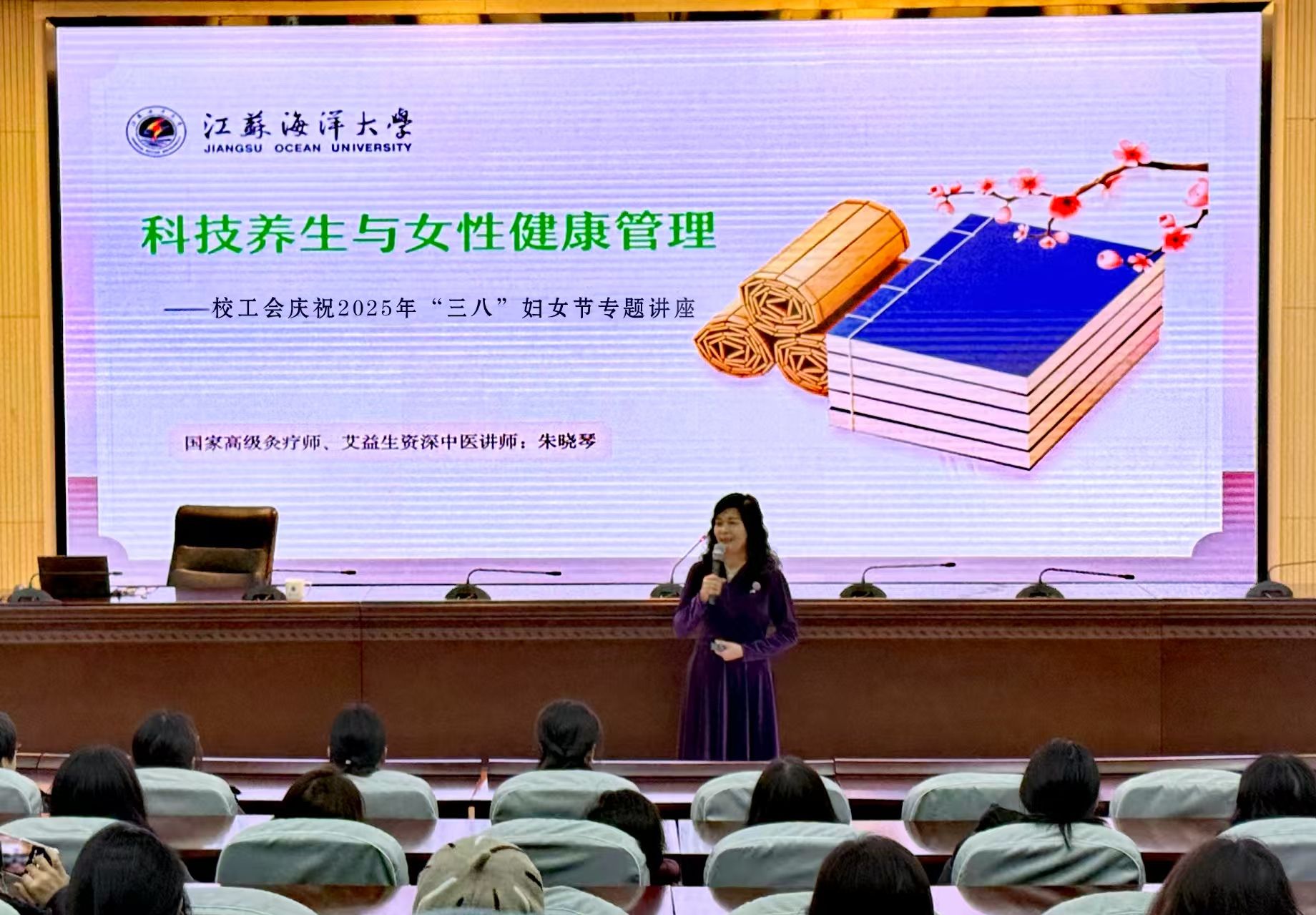 3月7日,校工会联合党委研究生工作部主办、机关分工会承办的"科技赋能养生,健康护航巾帼"健康主题活动在校会议中心举行,吸引近500名师生参与。保健养生专家、国家高级灸疗师朱晓琴开展《科技养生与女性健康管理》专题讲座,通过解析女性亚健康现状、阐释科技养生原理及应用场景、定制专属养生方案三个维度,结合典型案例展开系统讲解。实操环节设置智能艾灸仪体验区,开展经络按摩手法教学、无痛刮痧实操指导,并提供健康检测与专业咨询等服务。