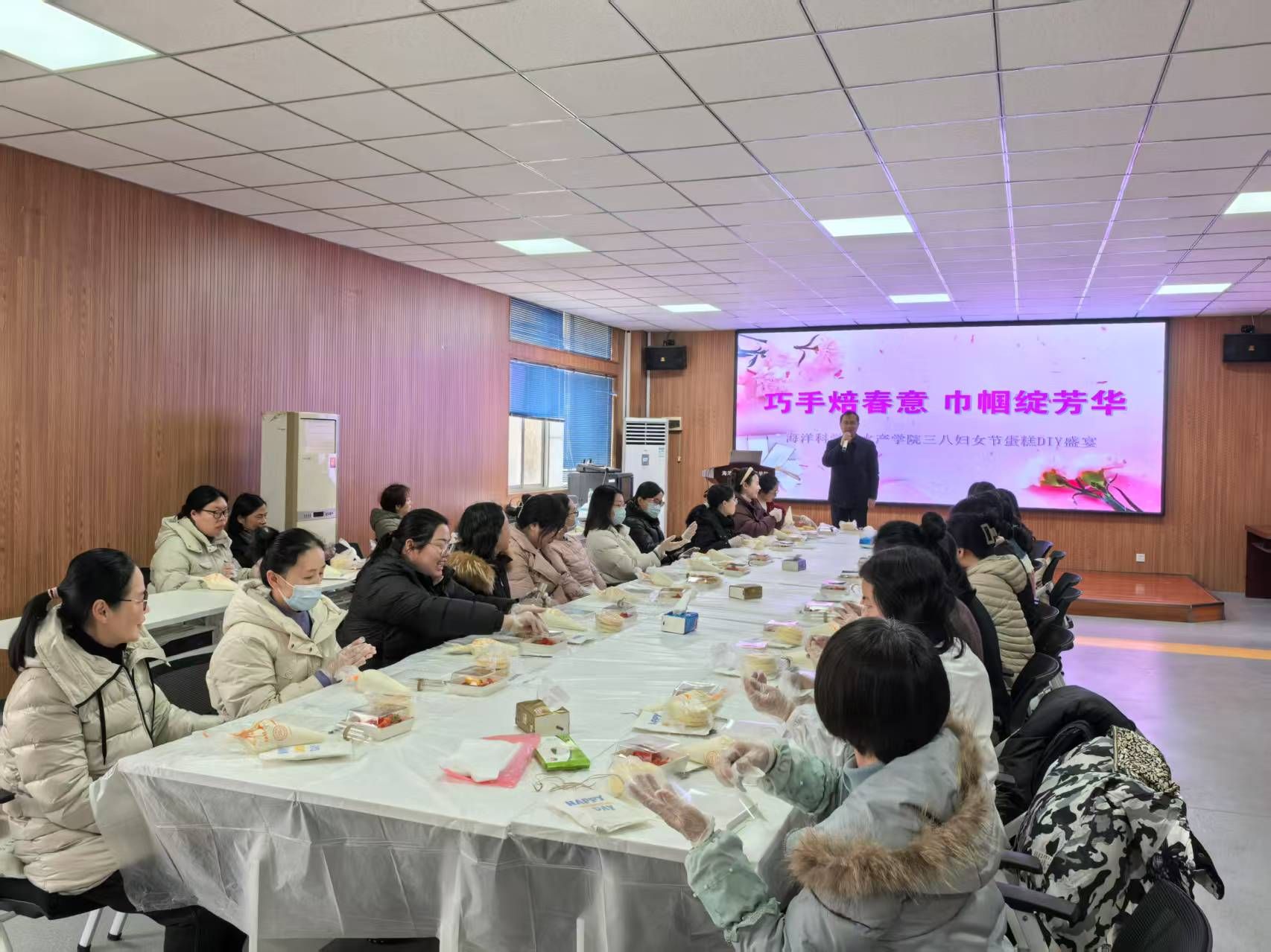 海洋科学与水产学院举办了“巧手焙春意 巾帼绽芳华”蛋糕DIY活动。女职工们纷纷化身“巧手烘焙师”,充分发挥创意和想象力,亲手制作属于自己的节日蛋糕:从蛋糕胚的涂抹到奶油的裱花,从水果的摆放到装饰的设计,每一步都充满了乐趣与挑战……她们纷纷拍照留念,记录下这美好的瞬间。她们纷纷表示,此次活动不仅让她们在忙碌的工作之余放松了心情,还增进了同事之间的交流与友谊,感受到了学院对女职工的关怀与尊重。