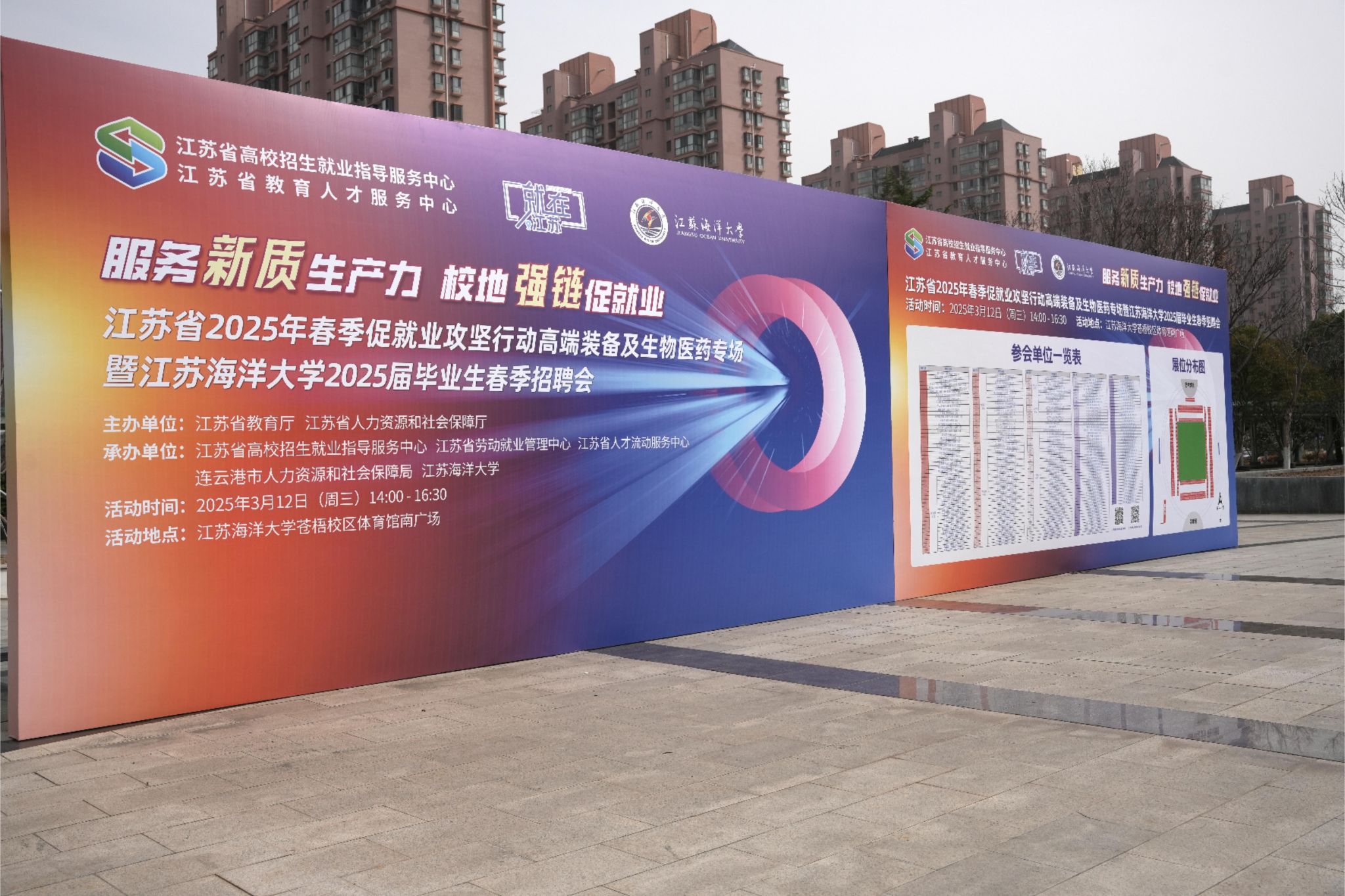 为促进毕业生高质量就业,搭建校政企供需精准对接平台,3月12日,江苏省2025年春季促就业攻坚行动高端装备及生物医药专场暨江苏海洋大学2025届毕业生春季招聘会在我校苍梧校区举行。本场招聘会邀请了来自省内以及北京市、上海市、广东省、安徽省、河南省、内蒙古、山东省等省市247家优质企业,带来7807 个岗位,涉及金融、医药、装备制造、新能源、教育等多个行业。
